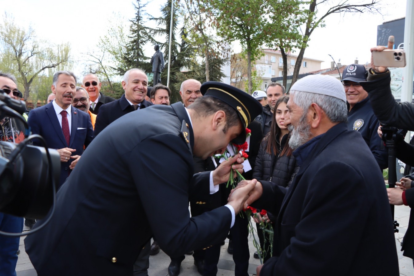 Olay yerine tedbir amaçlı gelen polisler, bu sıcak jest karşısında duygulandı. Kaymakam Levent Kılıç ve kurum müdürlerin de katılımıyla bu güzel anlar ölümsüzleştirildi. Kaymakam Kılıç, "İşte bizim gençliğimiz, işte bizim geleceğimiz. Sizleri yürekten tebrik ediyoruz" ifadelerini kullandı.