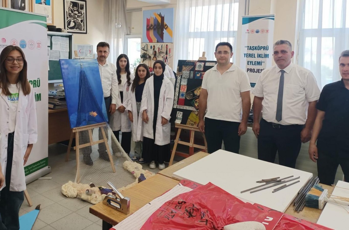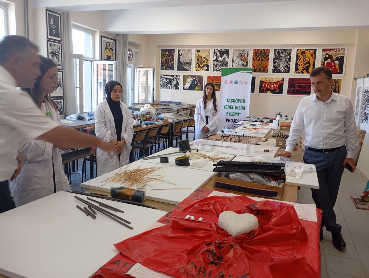 Taşköprü Kaymakamlığı koordinasyonunda, Taşköprü Belediyesi ve Taşköprü İlçe Milli Eğitim Müdürlüğü paydaşlığında, Taşköprü Eğitim Derneği tarafından yürütülen ve İçişleri Bakanlığı Sivil Toplumla İlişkiler Genel Müdürlüğü tarafından kabul edilen “Taşköprü Yerel İklim Eylemi Projesi” çerçevesinde açılan atölyede, Sıfır Atık Resim Sergisi hazırlıkları devam ediyor.