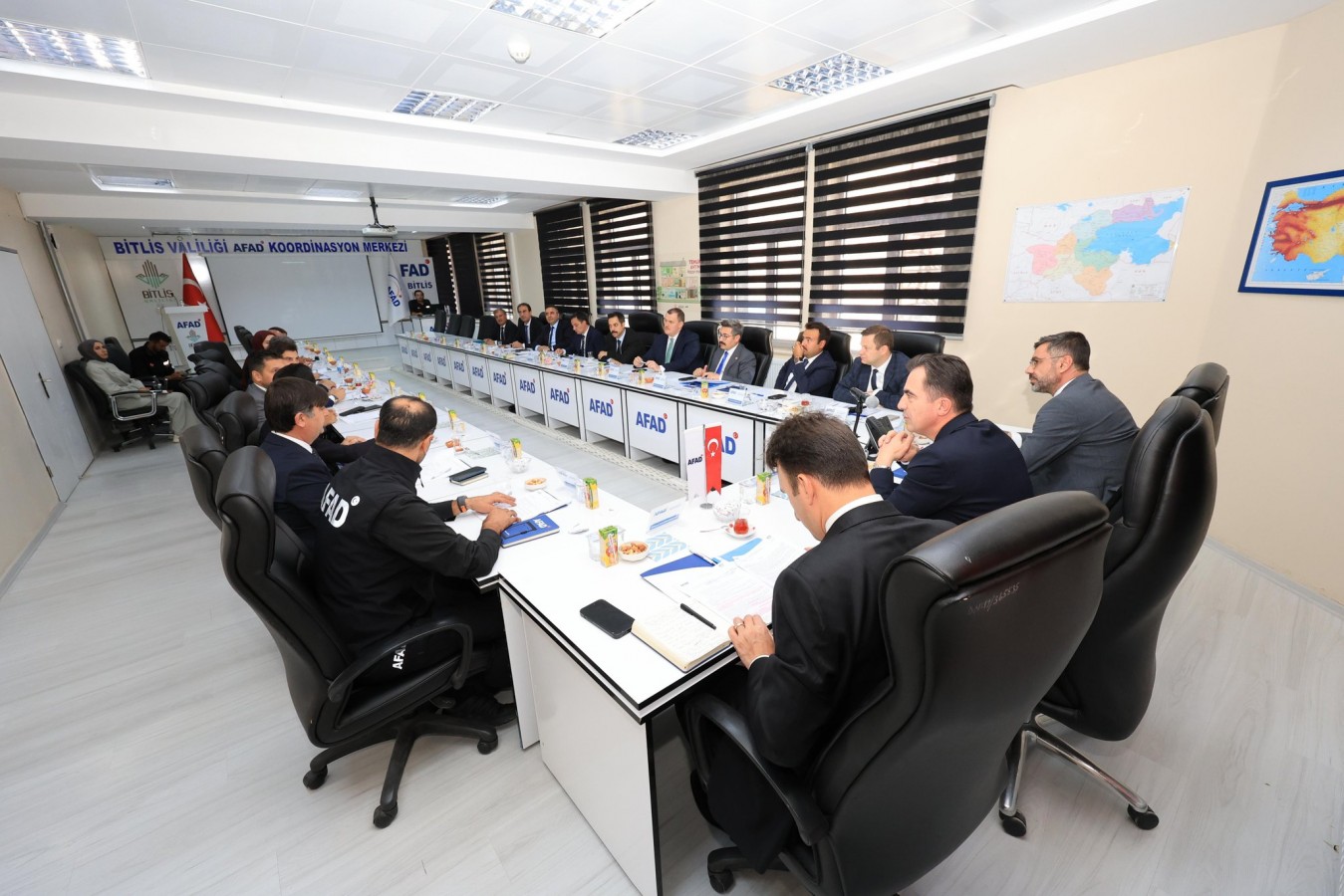 Toplantıya; Belediye Başkanı Nesrullah Tanğlay, Vali Yardımcısı Alay Yazıcı, İlçe Kaymakamlarımız, İlçe Belediye Başkanları, İl Özel İdaresi Genel Sekreteri Adem Aydoğdu, AFAD İl Müdürü Kerem Oruk, Bitlis Eren Üniversitesi Temsilcisi Doç. Dr. Fatih Adıgüzel, ilgili kurum müdürleri ve birim amirleri katıldı.