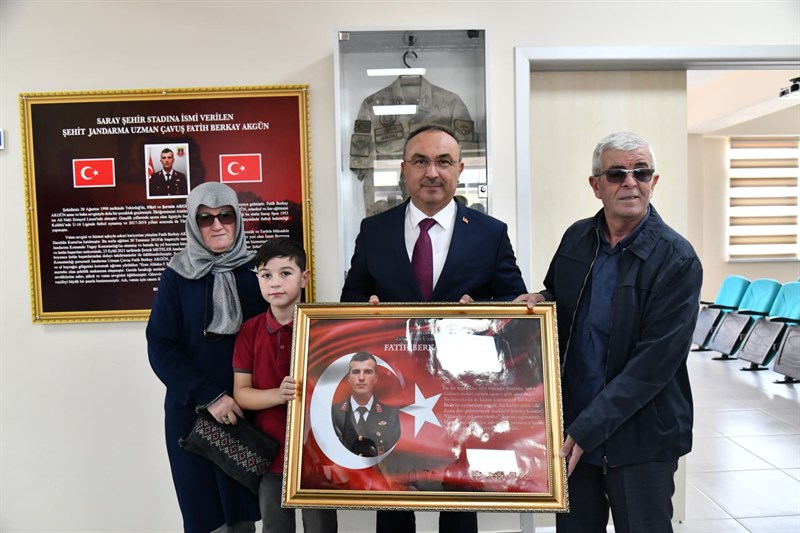 Tekirdağ Valisi Recep Soytürk, Şırnak’ta görev yaptığı sırada şehit olan Jandarma Uzman Çavuş Fatih Berkay Akgün’ün isminin bir zamanlar futbol oynadığı Saray Şehir Stadyumu’na verildiğini belirterek, "Aziz şehidimizin adı, gelecek nesillere aktarılacak. Bu statta spor yapan gençler, şehidimizi hayırla anacak, onu rol model alacak ve onun gibi bir insan olmaya çalışacak" dedi....
