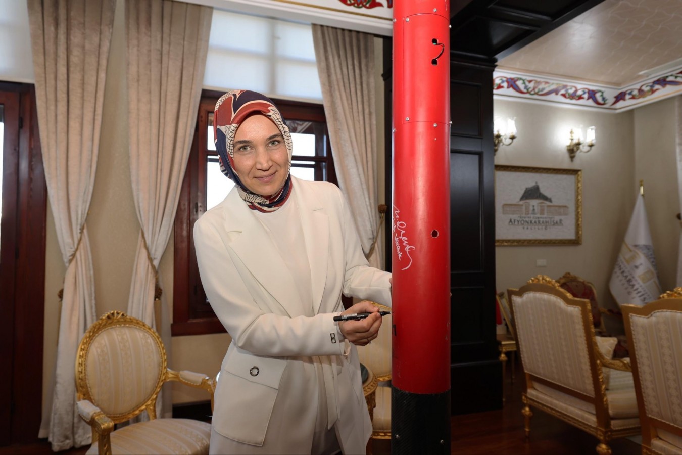 Afyonkarahisar Valisi Doç. Dr. Kübra Güran Yiğitbaşı, TEKNOFEST 2025’te Orta İrtifa Roket Yarışması'nda Türkiye üçüncüsü olan Kocatepe Roket Takımı üyeleriyle bir araya geldi. Vali Yiğitbaşı, roketle Valiliğe gelen gençlerle sohbet etti, ardından da roketin üzerine adını yazdı....