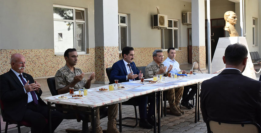 Programda İlçe Müftüsü Bekir Gezer tarafından şehitler için dualar edildi; şehitlerimiz J. Mkn. Komd. Er Necati Kahraman, J. Mkn. Komd. Er Osman Karakaya, J. Mkn. Komd. Er Kalender Şahin ve J. Mkn. Komd. Er Musa Saç’ın aziz hatıraları rahmetle yâd edildi.