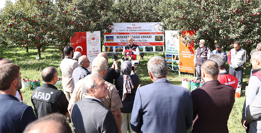 Muş Valisi Avni Çakır, Murat Nehri kıyısında yer alan 250 dekarlık elma bahçesinde hasat programına katılarak, çiftçilere bol ve bereketli bir hasat dönemi temennisinde bulundu....
