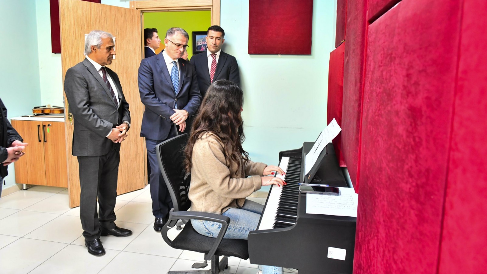 Van Valisi Ozan Balcı, Van Büyükşehir Belediyesi Konservatuvarı ve Hacıbekir Kültür Merkezi'ni ziyaret etti. Vali Balcı, konservatuvarda yapılan çalışmalar hakkında bilgi alarak, yetenek sınavını başarıyla geçip konservatuvarda keman, piyano, bağlama, flüt, kanun, ses eğitimi, ud, gitar, halk oyunları, resim ve tiyatro dallarında eğitim gören öğrencilerin yeteneklerini izledi.