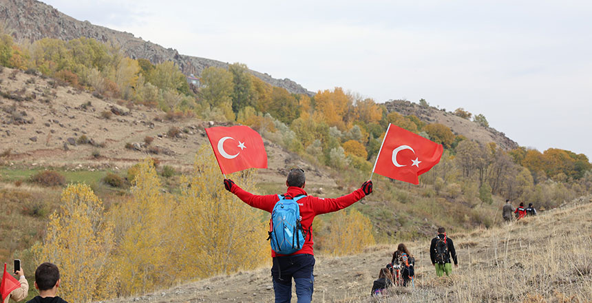 Üçkaya Vadisi’nde 102 kişinin katılımıyla gerçekleştirilen doğa yürüyüşü, Cumhuriyet’in 102’nci yıl dönümüne özel olarak planlandı. Etkinlik, Iğdır Valiliği ile Türkiye Dağcılık Federasyonu İl Temsilciliği iş birliğiyle gerçekleştirildi. Vali Ercan Turan ve eşi Nilüfer Baykal Turan, protokol üyeleri, sporcular ve doğaseverler yürüyüşe katılarak cumhuriyet coşkusunu paylaştı.