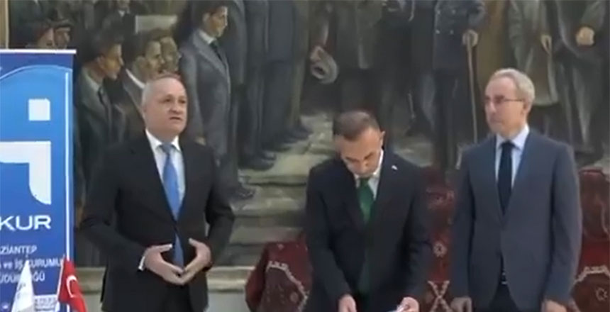 Törene Gaziantep Valisi Kemal Çeber, Gaziantep Üniversitesi Rektörü Prof. Dr. Sait Mesut Doğan, Gaziantep İslam Bilim ve Teknoloji Üniversitesi Rektörü Prof. Dr. Şehmus Demir ve Çalışma ve İş Kurumu İl Müdürü Aytekin Doğan katıldı.