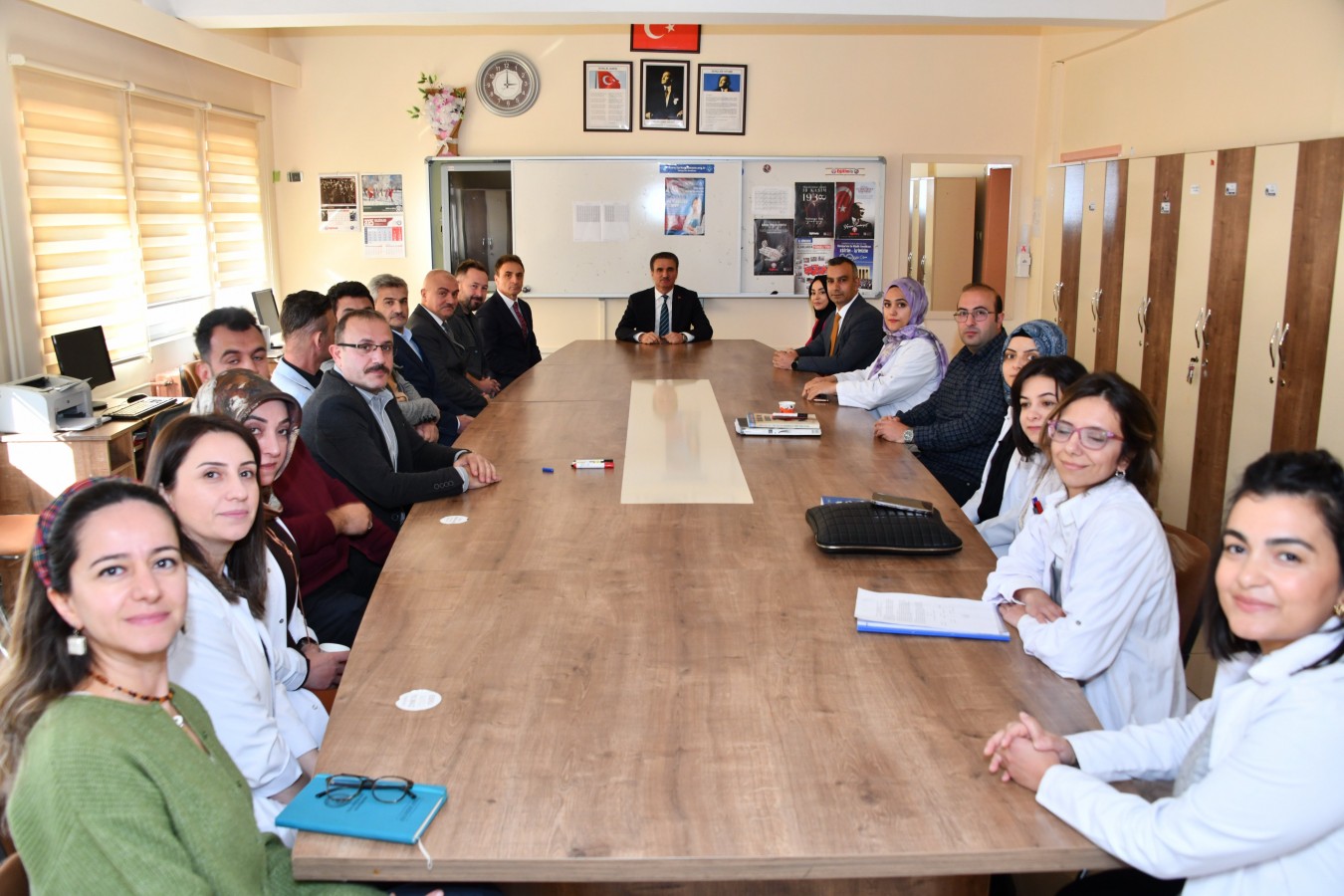 Ziyarette İl Milli Eğitim Müdürü Şener Doğan ile birlikte okulun bünyesinde yer alan “İl Eğitim Tarihi Müzesi”ni gezen Vali Baruş, müze hakkında bilgi aldıktan sonra öğretmenlerle toplantı gerçekleştirdi. Eğitim faaliyetleri ve yürütülen projeler üzerine istişarelerde bulunan Vali Baruş, öğretmenlere gayretlerinden dolayı teşekkür etti.