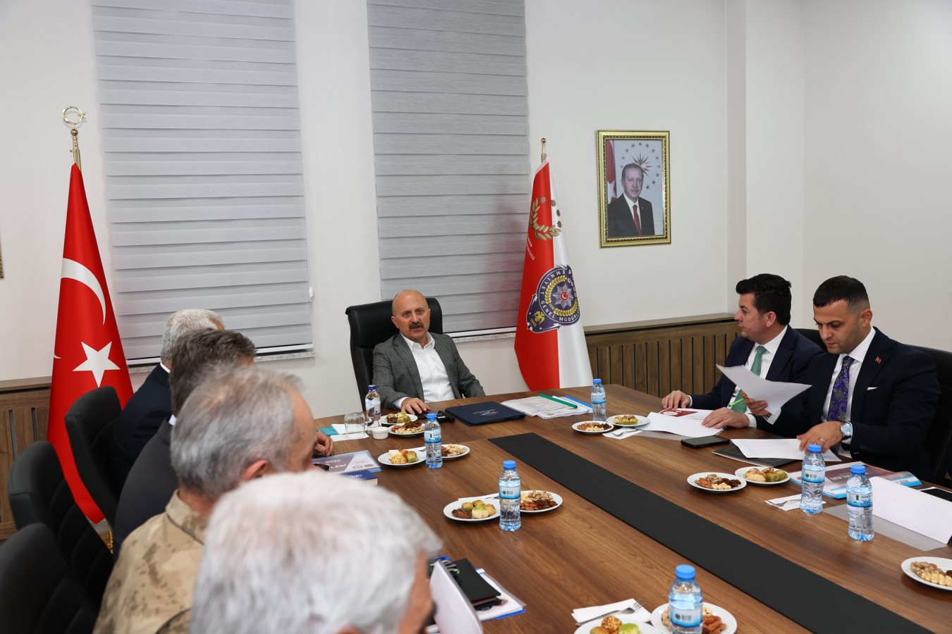 Yaklaşan kış mevsimi öncesinde, olumsuz hava koşulları nedeniyle yaşanabilecek trafik kazalarının önlenmesi, trafik güvenliğinin artırılması ve vatandaşların can ile mal güvenliğinin korunması amacıyla düzenlenen toplantıda, İl Emniyet Müdürlüğü ve İl Jandarma Komutanlığı tarafından il genelinde yürütülecek çalışmalar ve alınacak önlemler değerlendirildi.