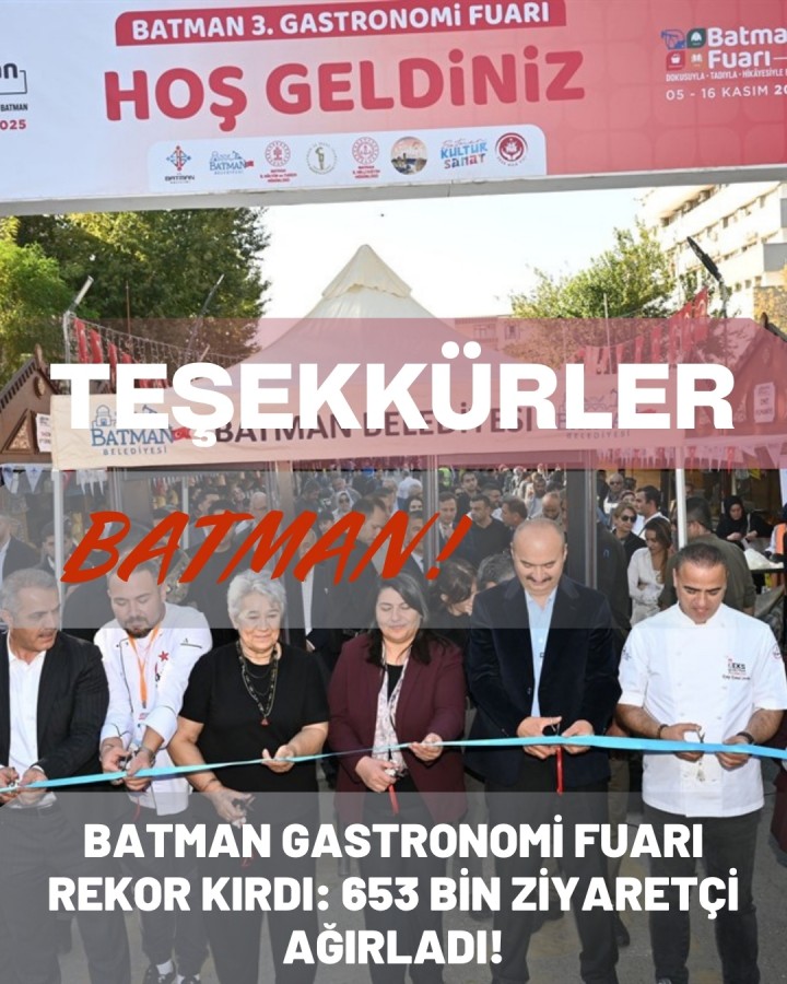Batman Valisi Ekrem Canalp, Gastronomi Fuarı'nda rekor kırıldığını belirterek, "Fuar, 653 bin ziyaretçi ağırladı. Festivaller sayesinde Batman, bölgenin en dinamik ve en çok ziyaret edilen şehirlerinden biri haline geldi" dedi....