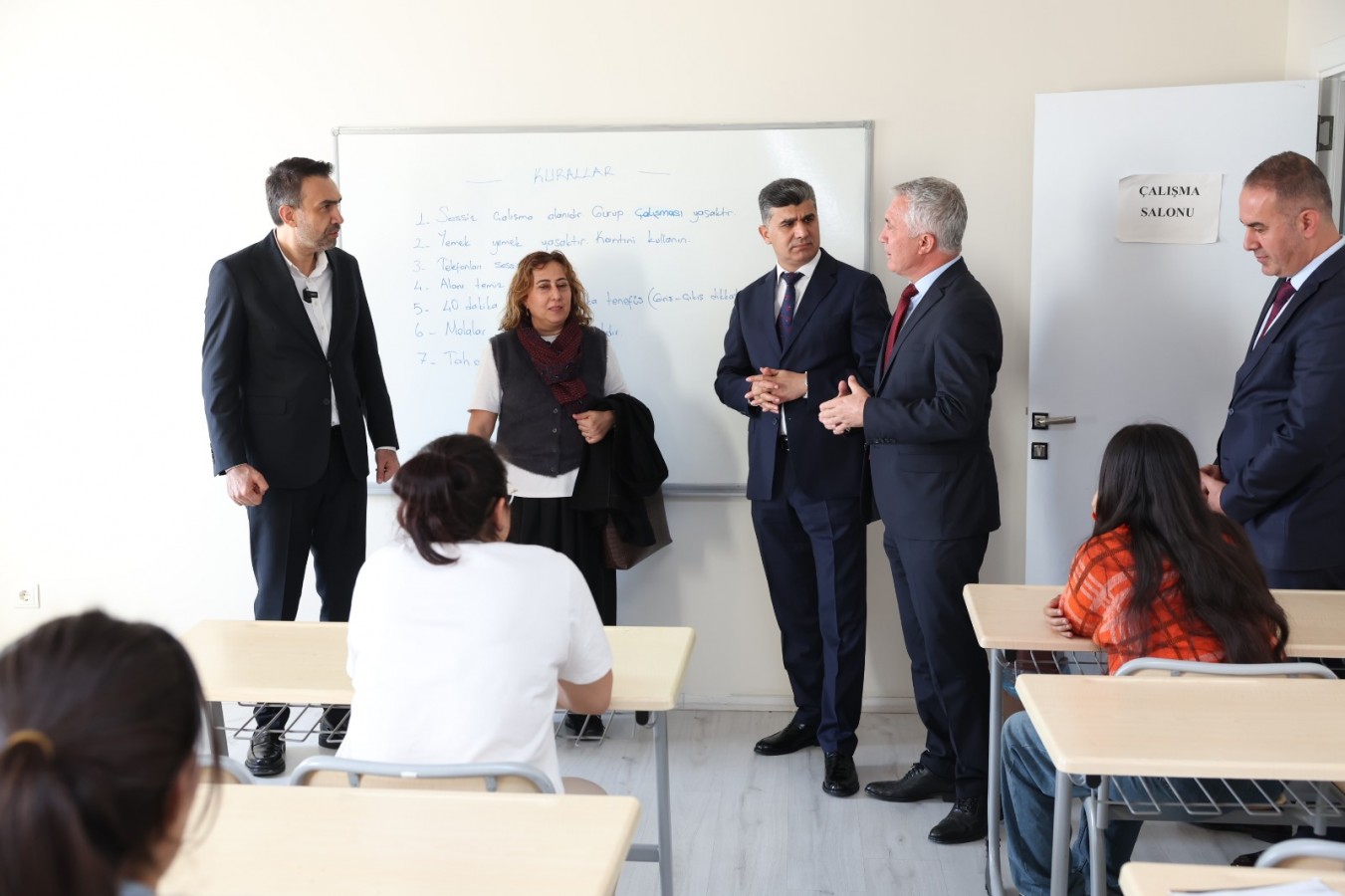 Ardından sınıfları gezen heyet, Etüt Merkezi’nin çalışma ortamını yerinde inceleyerek yapılan faaliyetler ve öğrencilere sunulan imkânlar hakkında bilgi aldı. Kaymakam Şener, gençlerin eğitimine sunulan her katkının Akdeniz’in geleceğine yapılmış en değerli yatırım olduğunu vurguladı.