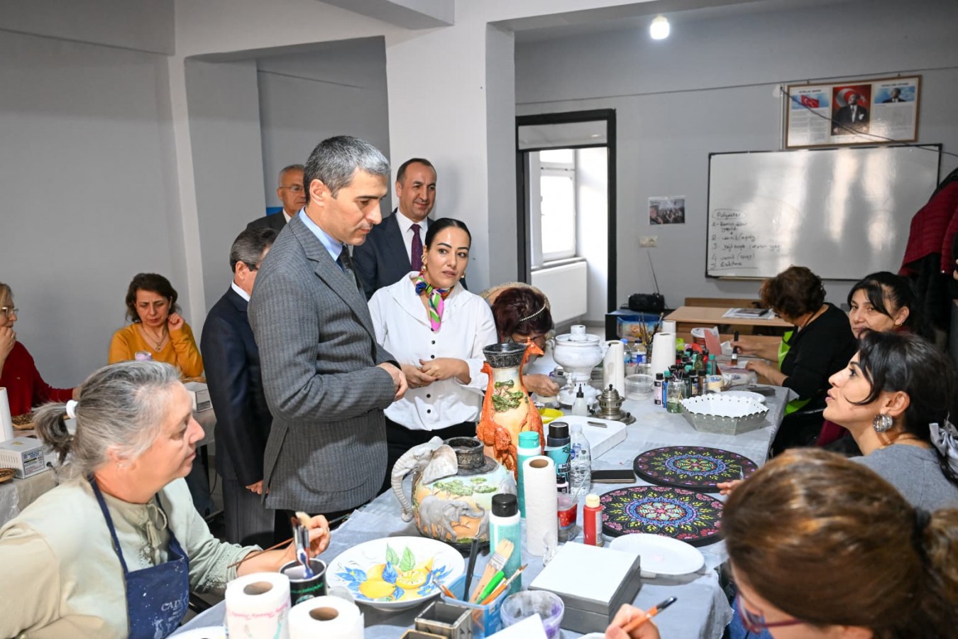 Halk Eğitim Merkezi’ni ziyaret eden Uşak Valisi Dr. Naci Aktaş, usta öğreticiler ve kursiyerlerle bir araya geldi. Kursiyerlerin el emeği ürünlerini inceleyen Vali Aktaş, topluma dokunan çalışmaların önemli olduğunu belirtti....