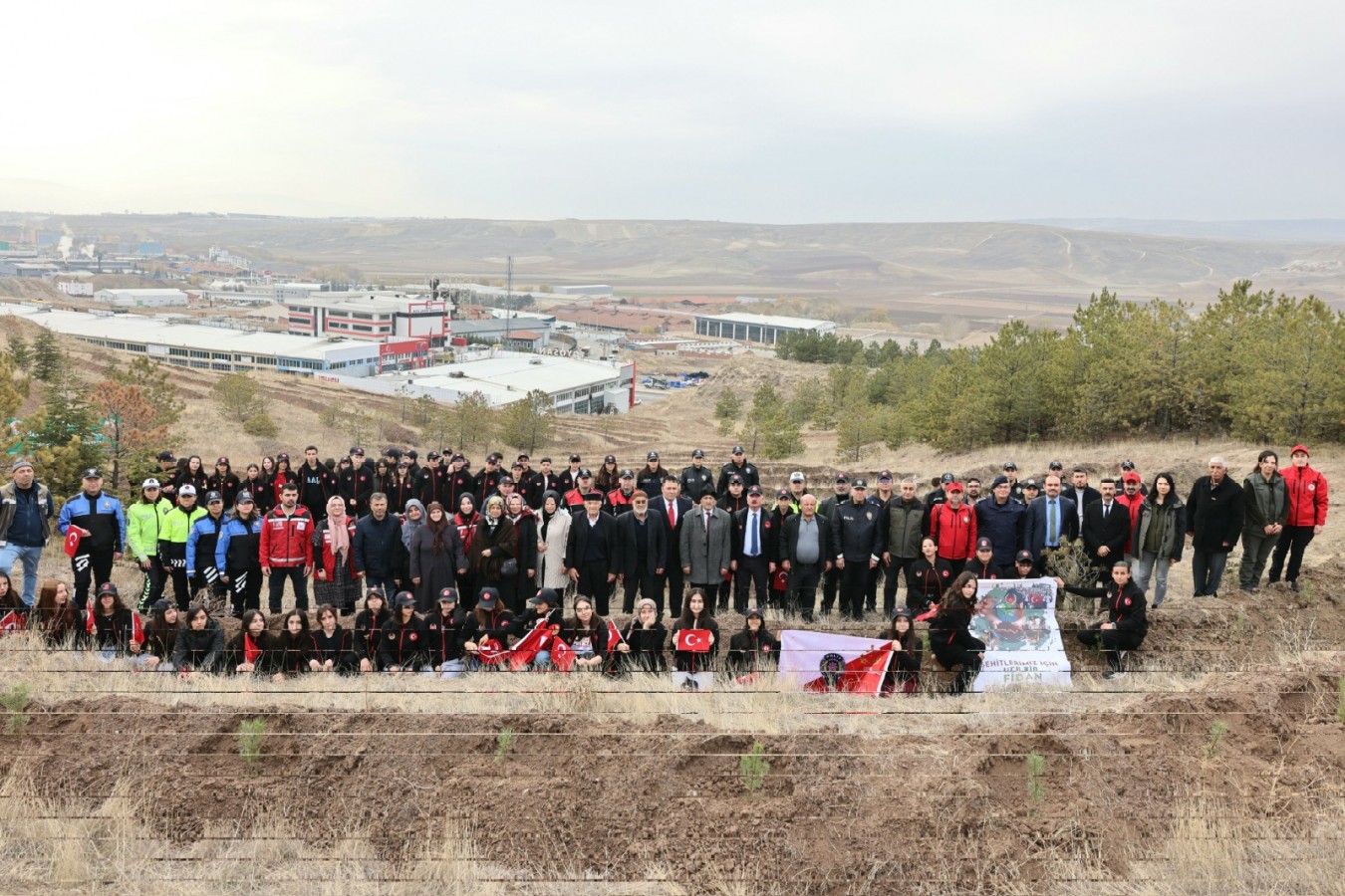 Emniyet Genel Müdürlüğü Terörle Mücadele Daire Başkanlığı ile Tarım ve Orman Bakanlığı Orman Genel Müdürlüğü iş birliğiyle ülke genelinde hayata geçirilen “Şehitlerimiz İçin Her Bir Fidan, Geleceğimiz İçin Bin Nefes” projesi kapsamında Çorum'da düzenlenen fidan dikme etkinliğine Vali Ali Çalgan, İl Emniyet Müdürlüğü personeli, öğrenciler ve şehit yakınları katıldı.