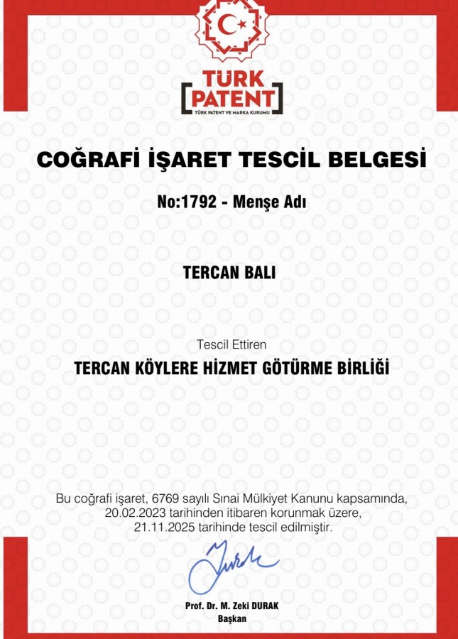 Erzincan Valisi Hamza Aydoğdu, Tercan Balı'nın coğrafi işaretle tescillendiğini belirterek, "Alınan bu tescil; bir belgeden öte, memleketimizin bereketinin kayıt altına alınmasıdır. Bu müjdeyi paylaşmak gönlümüzü ferahlatıyor" dedi....