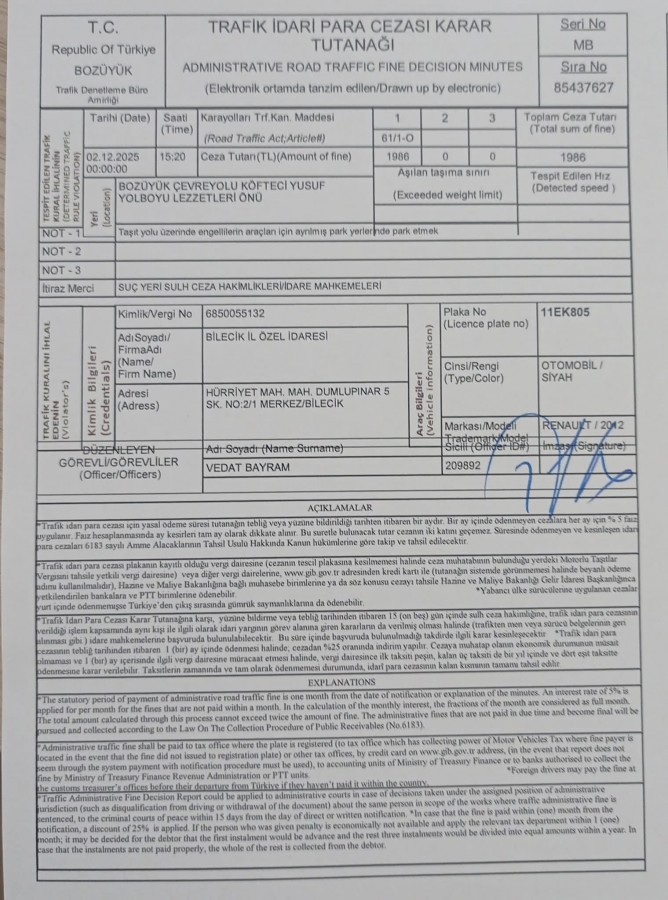 Bozüyük ilçesinde, bir restoran önündeki engelli park yerine kamu kurumu aracıyla usulsüz şekilde park edilmesine ilişkin bir vatandaş, sosyal medya üzerinden Vali Faik Oktay Sözer’e ulaşarak şikâyetini iletti. Engelli vatandaş paylaşımında, "Biz engellileri her gün hatırlayın lütfen. Dün saat 15.20 civarında Bozüyük Köfteci Yusuf önü… Engel olmasınlar bize, yeterince engelimiz var zaten Sayın Valim” ifadelerine yer verdi.