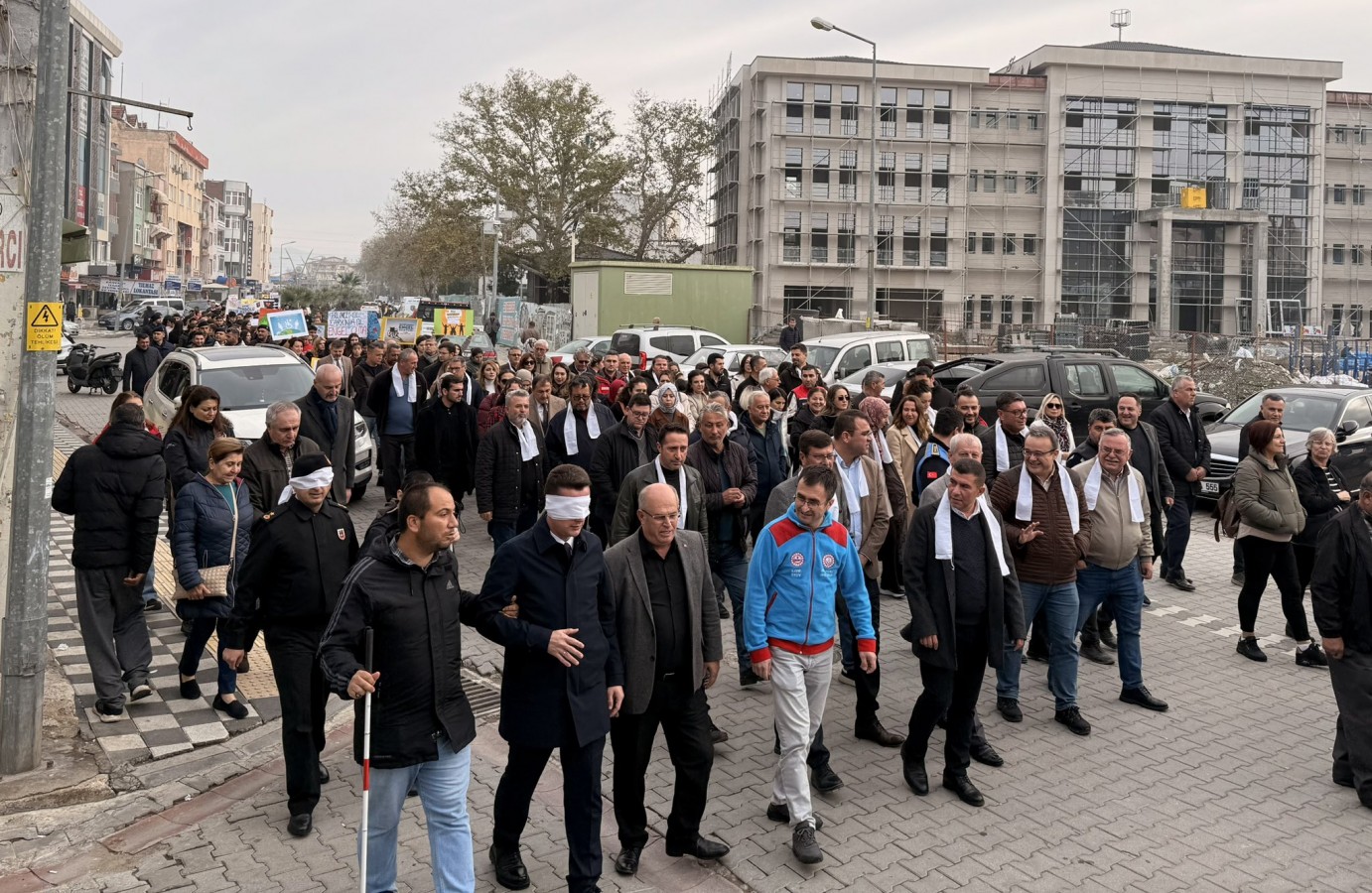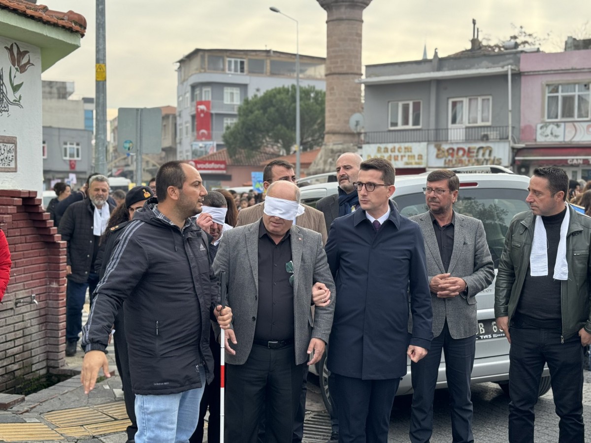 Ezine ilçesinde, engellilerin yaşadığı zorluklara dikkat çekmek ve empati duygusunu güçlendirmek amacıyla anlamlı bir farkındalık etkinliği düzenlendi. Ezine Kaymakamı Yusuf Kaptanoğlu'nun öncülüğünde gerçekleşen etkinlikte, vatandaşlar gözlerini dünyaya kapatarak sadece bir başkasının koluna tutunup yürüdü.