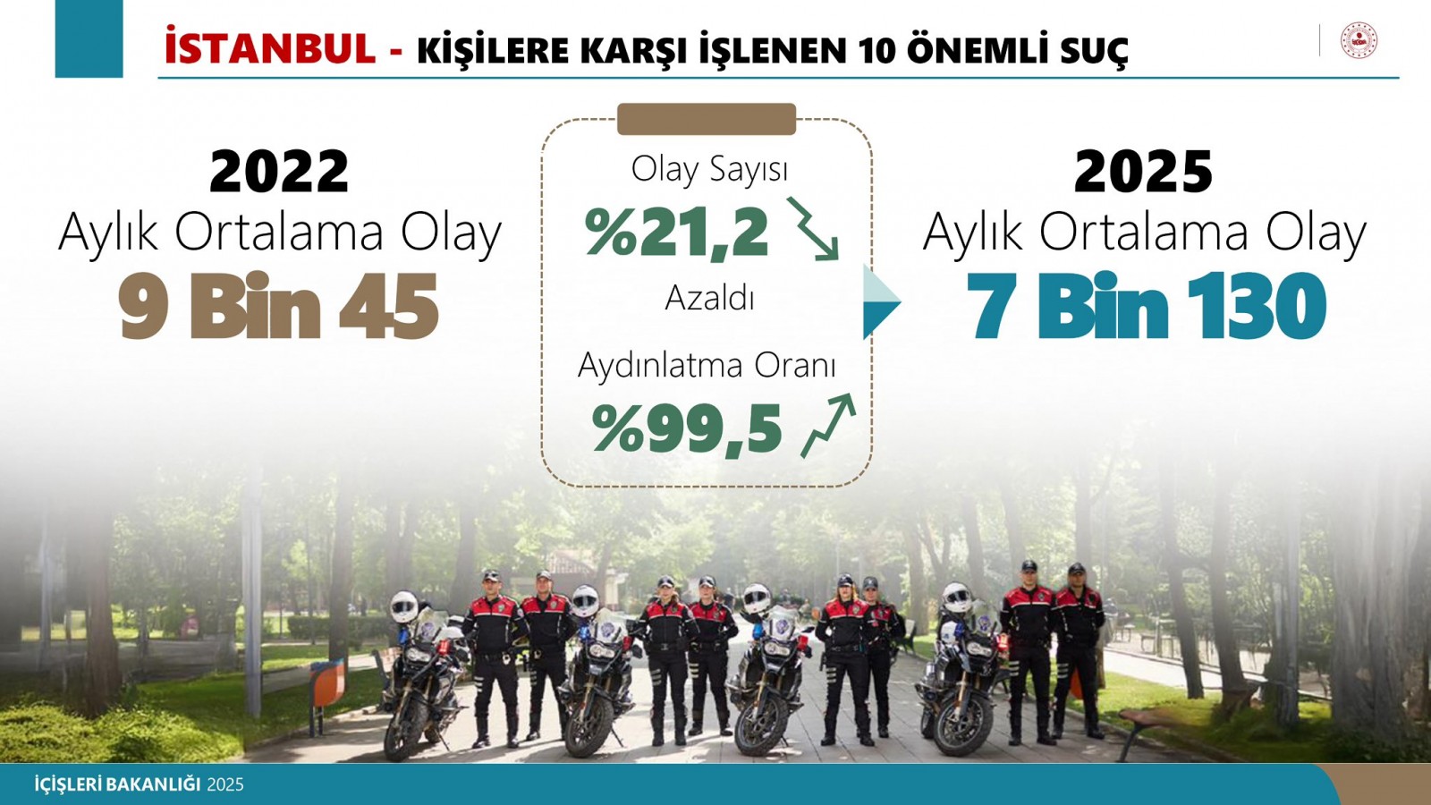 Bakan Yerlikaya, kapsamlı bir toplantı yaptıklarını ve yürütülen çalışmaları titizlikle değerlendirdiklerini söyledi. Yerlikaya, "Şehir eşkıyalığına soyunan, suç işlemeyi kendine hak gören her kim varsa, karşılarında biz varız! Hiçbir şehir eşkıyasının, vatandaşlarımıza musallat olmasına, esnaflarımızın helal lokmasına göz dikmesine izin vermedik, vermeyeceğiz. İstanbul’umuzun huzur ve güvenliği için; Asayiş ve Organize Suçlarla Mücadele başlıklarında kapsamlı bir değerlendirme toplantısı yaptık. Uyguladığımız güçlü ve sürekli operasyonel yöntem sayesinde; organize suç örgütlerinin, elebaşı ve yönetici kadroları, yeniden örgütlenme kapasiteleri, finansal ağları ve mal varlıkları, kırmızı bülten ve ortak operasyonlarla uluslararası bağlantıları, pek çok ilimizde eşzamanlı operasyonlarla saha hakimiyetleri tasfiye edilmektedir" diye konuştu.