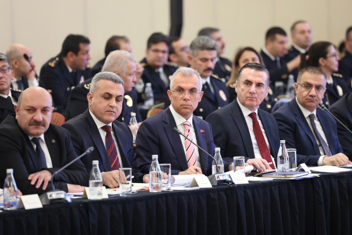 İçişleri Bakanı Ali Yerlikaya, İstanbul’da düzenlenen Organize Suçlar ve Asayiş Toplantısı sonrası basın açıklaması yaptı. Toplantıda ayrıca İstanbul Valisi Davut Gül, Jandarma Genel Komutanı Orgeneral Ali Çardakcı, Emniyet Genel Müdürü Mahmut Demirtaş, Sahil Güvenlik Komutanı Koramiral Ahmet Kendir, İçişleri Bakanlığı bürokratları ve İstanbul ilçe kaymakamları ile ilgili kurum personelleri yer aldı.