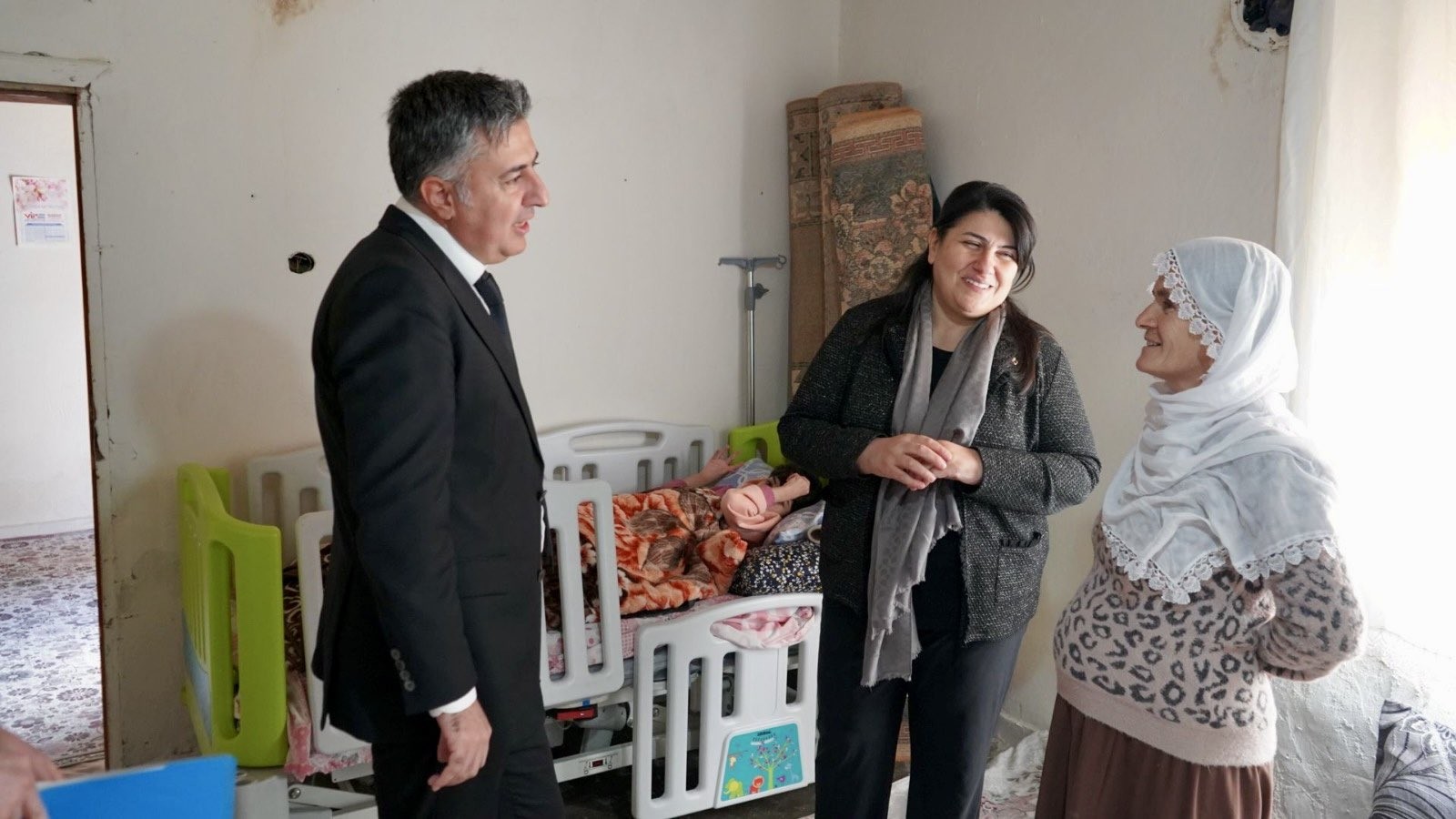 Batman Valisi Ekrem Canalp’ın eşi Dr. Ayten Canalp, İl Sağlık Müdürü Dr. Murat Solmaz ile birlikte, Valilik himayelerinde yürütülen “Evde Sağlık Hastalarıyla El Ele” Projesi kapsamında fonksiyonel pediatrik yatak desteği sağlanan aileleri evlerinde ziyaret etti.