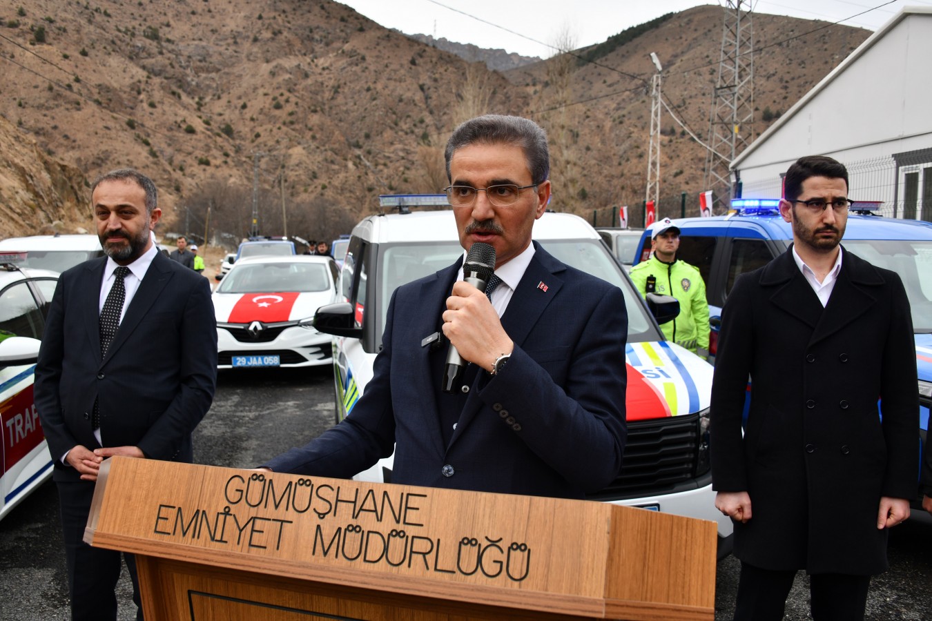 Gümüşhane Valisi Aydın Baruş, İçişleri Bakanlığı tarafından İl Özel İdaresi ve hayırseverlerin katkılarıyla temin edilen 28 yeni aracın emniyet ve jandarma teşkilatlarına teslim törenine katıldı. Tören, Akçakale Mahallesi'ndeki Bölge Trafik Denetleme Şube Müdürlüğünde düzenlendi.