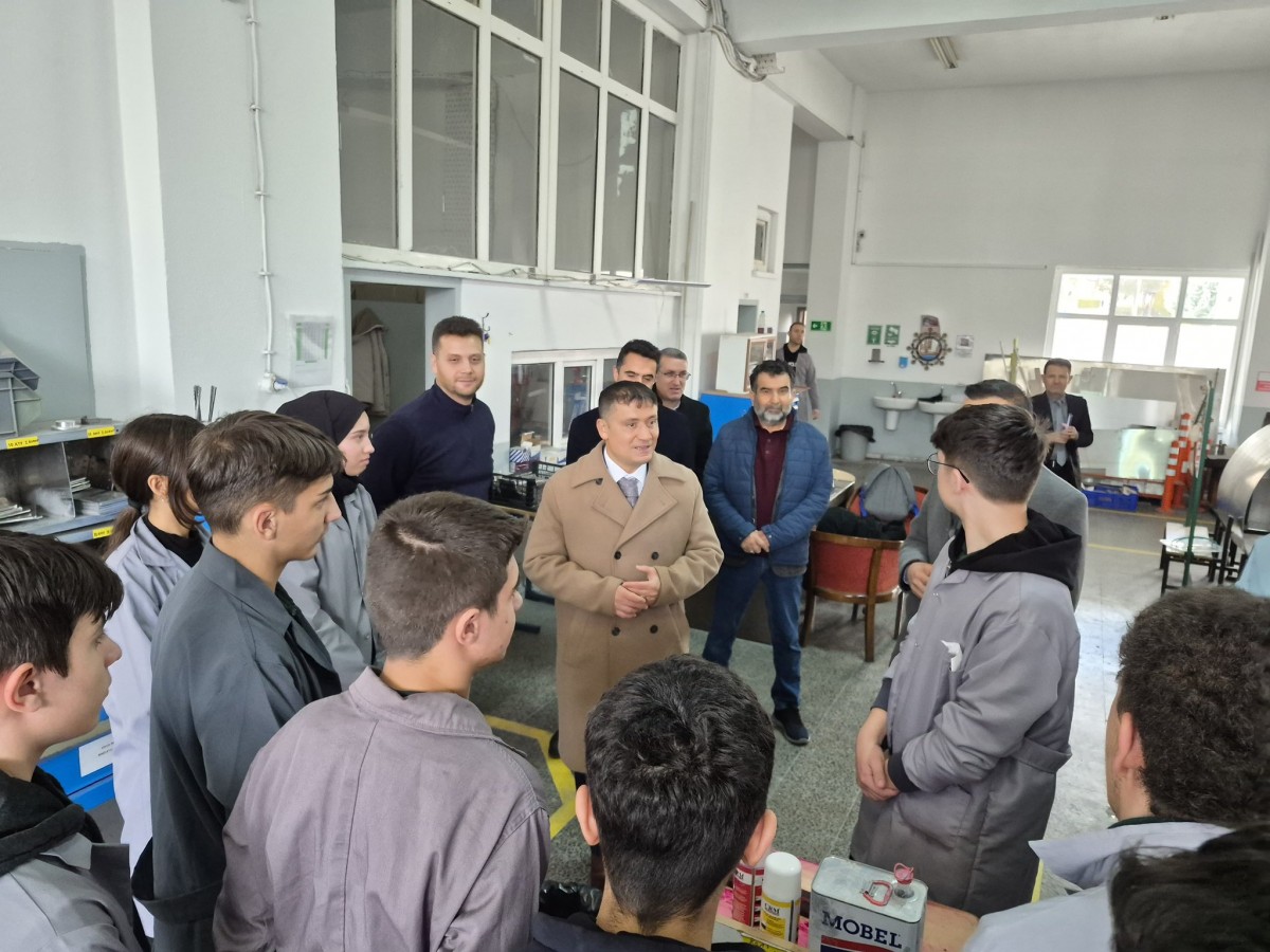 Öğrencilerle sohbet eden Kaymakam Mehmetbeyoğlu, "TUSAŞ Şehit Hakan Gülşen Mesleki ve Teknik Anadolu Lisesi’ni ziyaret ederek yürütülen eğitim çalışmaları ve atölye uygulamalarını yerinde inceledik. Okul yönetimimiz ve öğretmenlerimizle yaptığımız değerlendirmede, öğrencilerimizin mesleki donanımlarını güçlendirmeye yönelik projeleri ve yeni dönem çalışmalarını ele aldık. Eğitime emek veren tüm öğretmenlerimize teşekkür ediyor, öğrencilerimize başarılar diliyorum" diye konuştu.