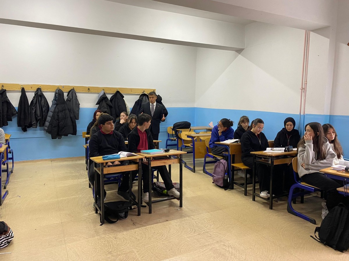 Kaymakam Mehmetbeyoğlu, "Anadolu Lisesi’ni ziyaret ederek okulda yürütülen eğitim faaliyetlerini yerinde inceledik, sınıflarımızda öğrencilerimizle bir araya geldik. Gençlerimizin öğrenme isteği ve öğretmenlerimizin özverili çalışmaları bizlere her zaman umut veriyor. Eğitim ortamlarının güçlendirilmesine yönelik çalışmalarımıza kararlılıkla devam edeceğiz" diye konuştu.