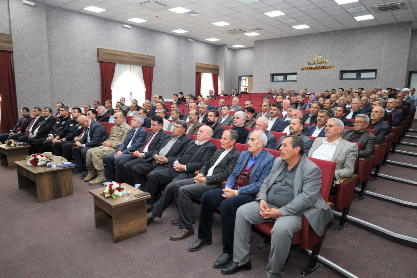 Haliliye Kaymakamı Dr. Muhammed Serkan Şahin başkanlığında, konferans salonunda mahalle muhtarlarının katılımıyla kapsamlı bir değerlendirme toplantısı düzenlendi. Toplantıda ilçenin genel durumu, yürütülen çalışmalar ve ihtiyaç duyulan hizmetler görüşülürken; özellikle tarım arazilerinde kaçak yapılaşmanın önlenmesi ve anız yangınlarına karşı alınacak tedbirler gündemin öncelikli maddeleri arasında yer aldı.