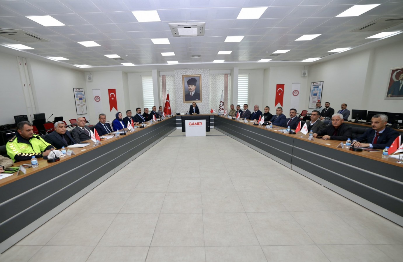 Toplantıda; kar yağışı, buzlanma, çığ riski ve yol kapanmalarına karşı kurumların hazırlıkları, ulaşımın kesintisiz sağlanması, acil durum ekiplerinin koordinasyonu, kış lastiği uygulamaları ve sahadaki iş makinelerinin planlaması ele alındı.