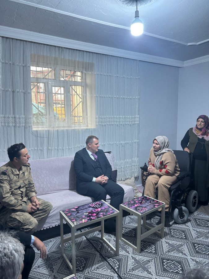 Engelli vatandaş Kadir Balta’yı ve şehit babası Abdulcebbar Öngün’ü de evlerinde ziyaret eden Kaymakam Yılmazer, ailelerin istek ve ihtiyaçlarını dinledi, her zaman yanlarında olduklarını ifade etti.