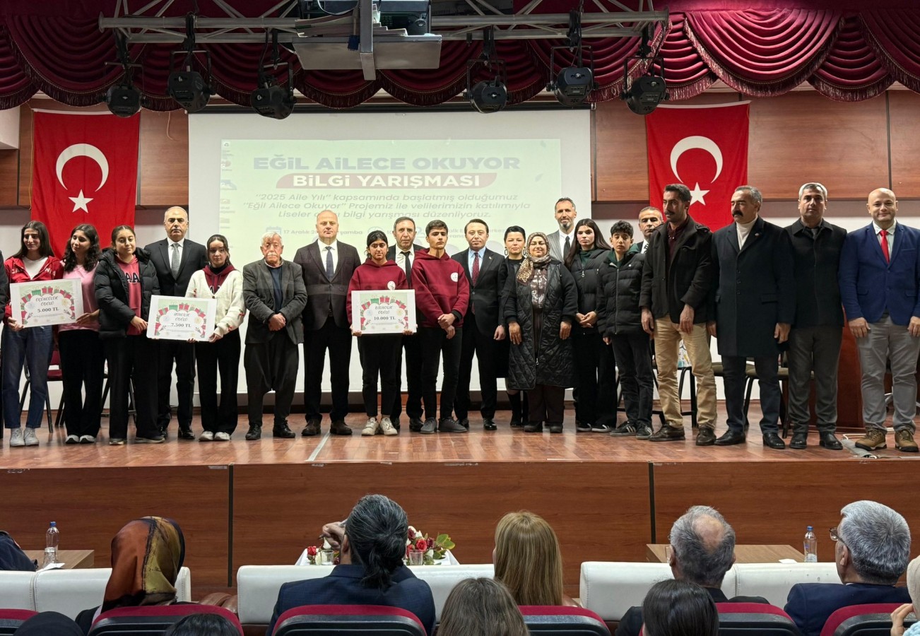 Eğil Halk Eğitim Merkezi Konferans Salonu’nda düzenlenen yarışmada, ailelerin eğitime aktif katılımının önemine dikkat çekildi. Kaymakam Hülür, "2025 Aile Yılı kapsamında hayata geçirilen Eğil Ailece Okuyor projesi çerçevesinde, liseler arası bilgi yarışması gerçekleştirildi. Eğitimi merkeze alan bu anlamlı projede emeği geçen tüm kurumlarımıza, öğretmenlerimize, öğrencilerimize ve velilerimize teşekkür ediyoruz" şeklinde konuştu.