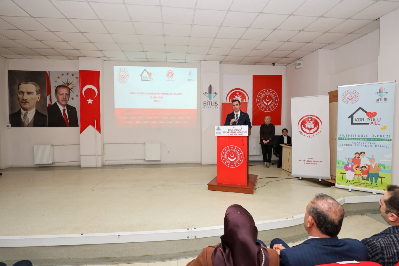 Bitlis Valisi Ahmet Karakaya ve eşi Özlem Karakaya, Gönül Elçileri ile Koruyucu Aile Farkındalık Toplantısı’na katıldı. Toplantıya Belediye Başkanı Nesrullah Tanğlay ve eşi, Cumhuriyet Başsavcısı Emre Genç ve eşi, Bitlis Eren Üniversitesi Rektörü Prof. Dr. Necmettin Elmastaş ve eşi, vali yardımcıları, ilçe kaymakamları, kurum müdürleri, koruyucu aileler ve çocuklar da iştirak etti.