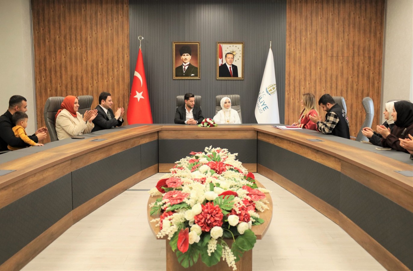 Projeden yararlanarak evlenen Hüseyin Bulut – Zeynep Demirkan ile Abdüllatif Güneş – Ayşe Ertuğrul çiftlerinin nikâh şahitliğini yapan Kaymakam Şahin, çiftleri tebrik ederek filografi sanatıyla işlenmiş Türk Bayrağı ve Kur’an-ı Kerim hediye etti.