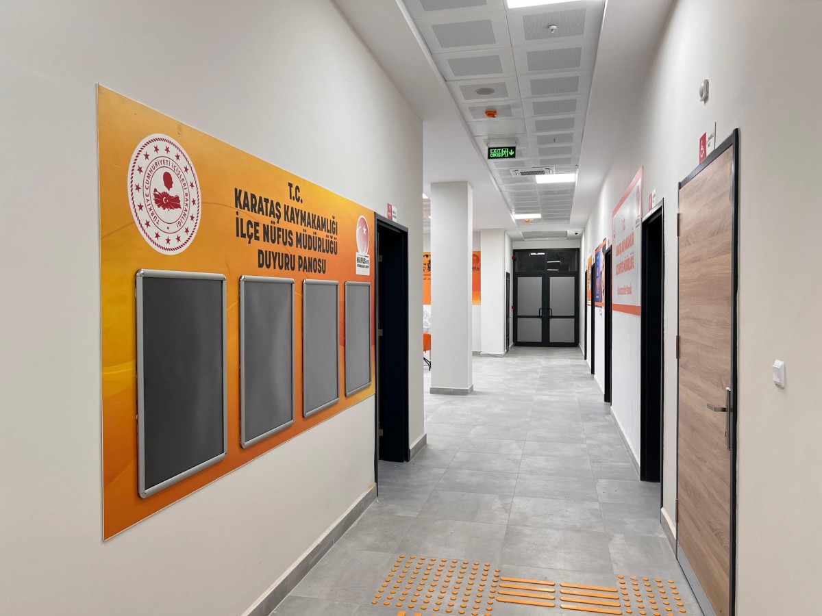Yakında açılacak olan Karataş Kaymakamlığı yeni hizmet binasında vatandaşlara hizmet vermeye başlayan ilk birim, Karataş İlçe Nüfus Müdürlüğü oldu. Devlet-vatandaş temasının en yoğun yaşandığı, kimlik, adres, nüfus kayıt ve vatandaşlık işlemleri gibi hayatın her aşamasına dokunan temel hizmetleri yürüten İlçe Nüfus Müdürlüğü, yeni binada ilk faaliyete geçen birim oldu.