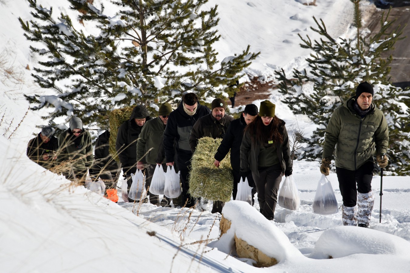 Ekiplerle omuz omuza vererek karla kaplı zeminde ot ve buğday çuvallarını taşıyan Vali Baruş, bu malzemeleri başta yaban keçileri olmak üzere yaban hayvanlarının kolaylıkla ulaşabileceği ve güvenle beslenebileceği şekilde bıraktı. İl Jandarma Komutanı Kıdemli Albay Bilal Sarıdoğan ve Doğa Koruma ve Milli Parklar Müdürü İlbeyi Aydın’ın da katılımıyla gerçekleştirilen programda açıklamalarda bulunan Vali Baruş, "Gümüşhane dağlarının süsü” olarak nitelendirilen yaban keçilerinin sayısının il genelinde 3 bini aştığını ifade etti.
