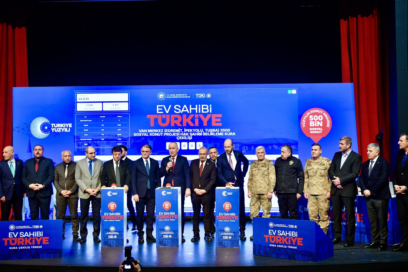 Çevre, Şehircilik ve İklim Değişikliği Bakanlığı, Toplu Konut İdaresi Başkanlığı (TOKİ) tarafından '500 Bin Sosyal Konut Projesi' kapsamında Van’da inşa edilecek 6 bin 803 konutun hak sahiplerinin belirlenmesi için kura töreni düzenlendi.