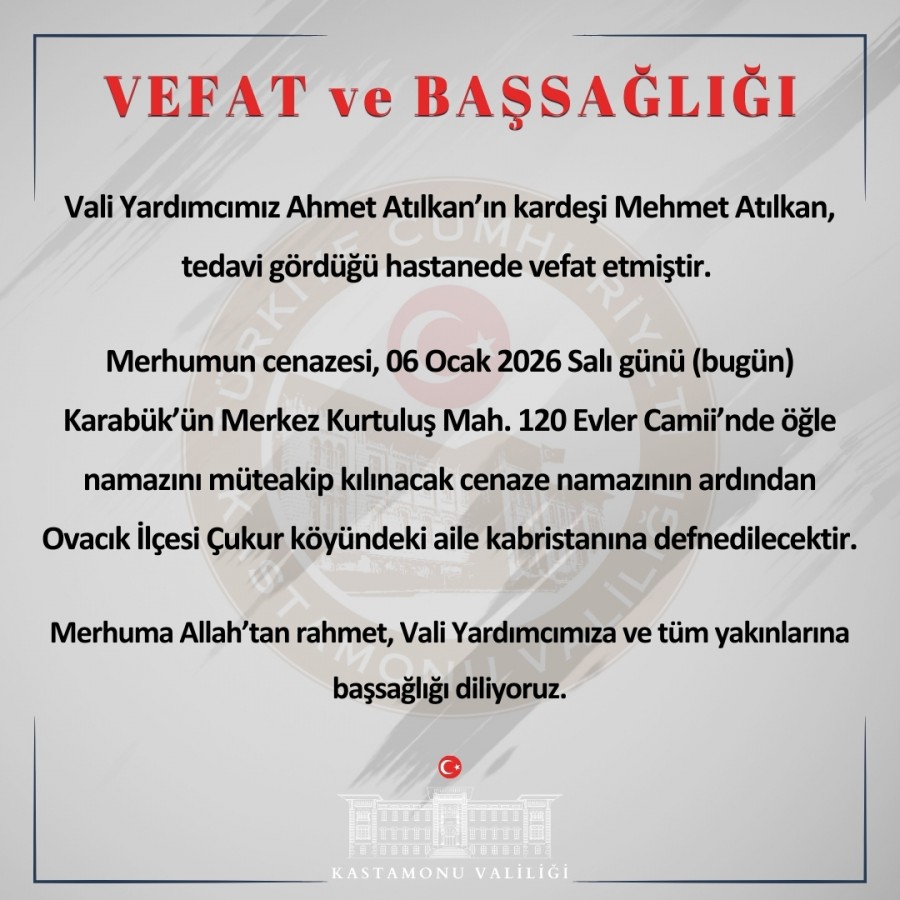 Kastamonu Vali Yardımcısı Ahmet Atılkan'ın kardeşi Mehmet Atılkan tedavi gördüğü hastanede hayatını kaybetti....