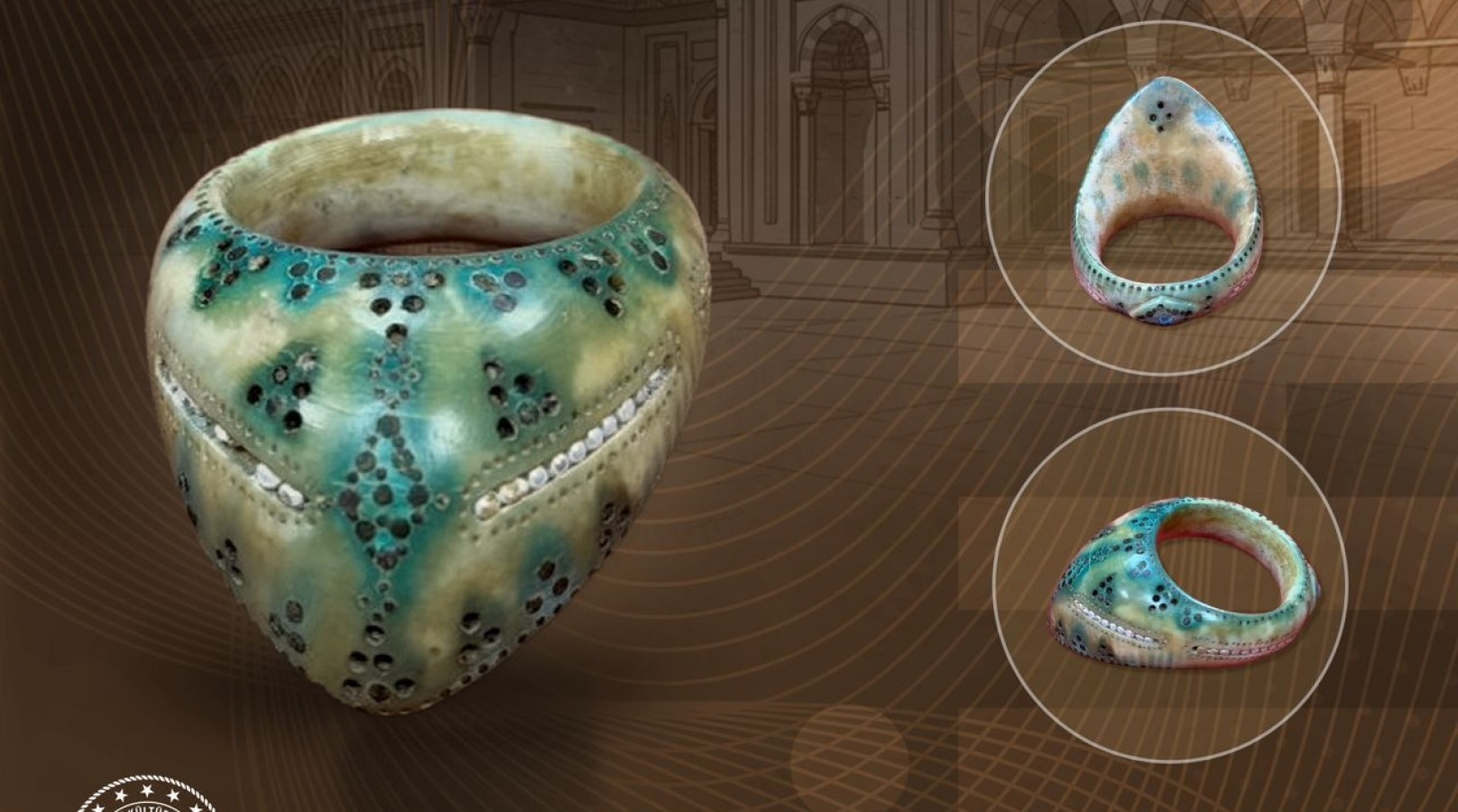 Büyük Saray yapısının güneydoğu köşesinde gerçekleştirilen kazılarda ortaya çıkarılan zihgir (okçu yüzüğü), fildişinden imal edilmiş; inci, firuze ve gümüş kakmalarla bezenmiş yüksek nitelikli bir işçiliğe sahip. Kaş bölümündeki inci dizileri, kulak kısmındaki firuze kakma ve gövdeyi süsleyen geometrik gümüş bezemeler, eserin estetik bütünlüğünü ve dönemin ustalığını açıkça ortaya koyuyor.