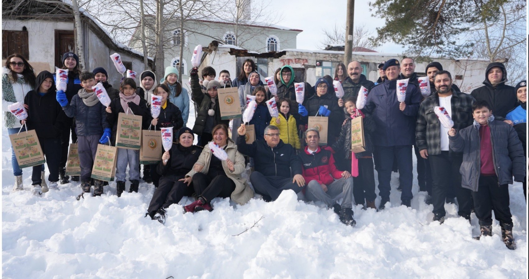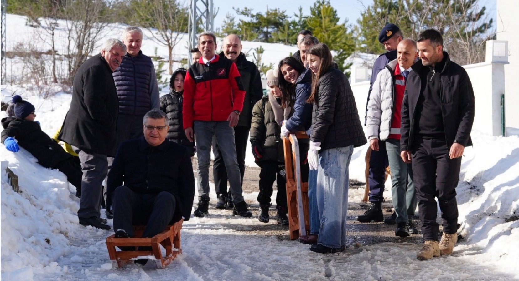 Vali Özarslan, çocuklarla kızak yaptı, kar topu oynadı