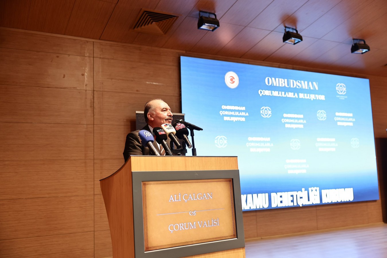 Ombudsman Çorumlularla Buluşuyor programında konuşan Vali Ali Çalgan, "Kamu Denetçiliği Kurumu, çok önemli bir işleve sahip. İdare olarak, Kamu Denetçiliği Kurumu’nun tavsiye kararlarını harfiyen yerine getiriyoruz" dedi....