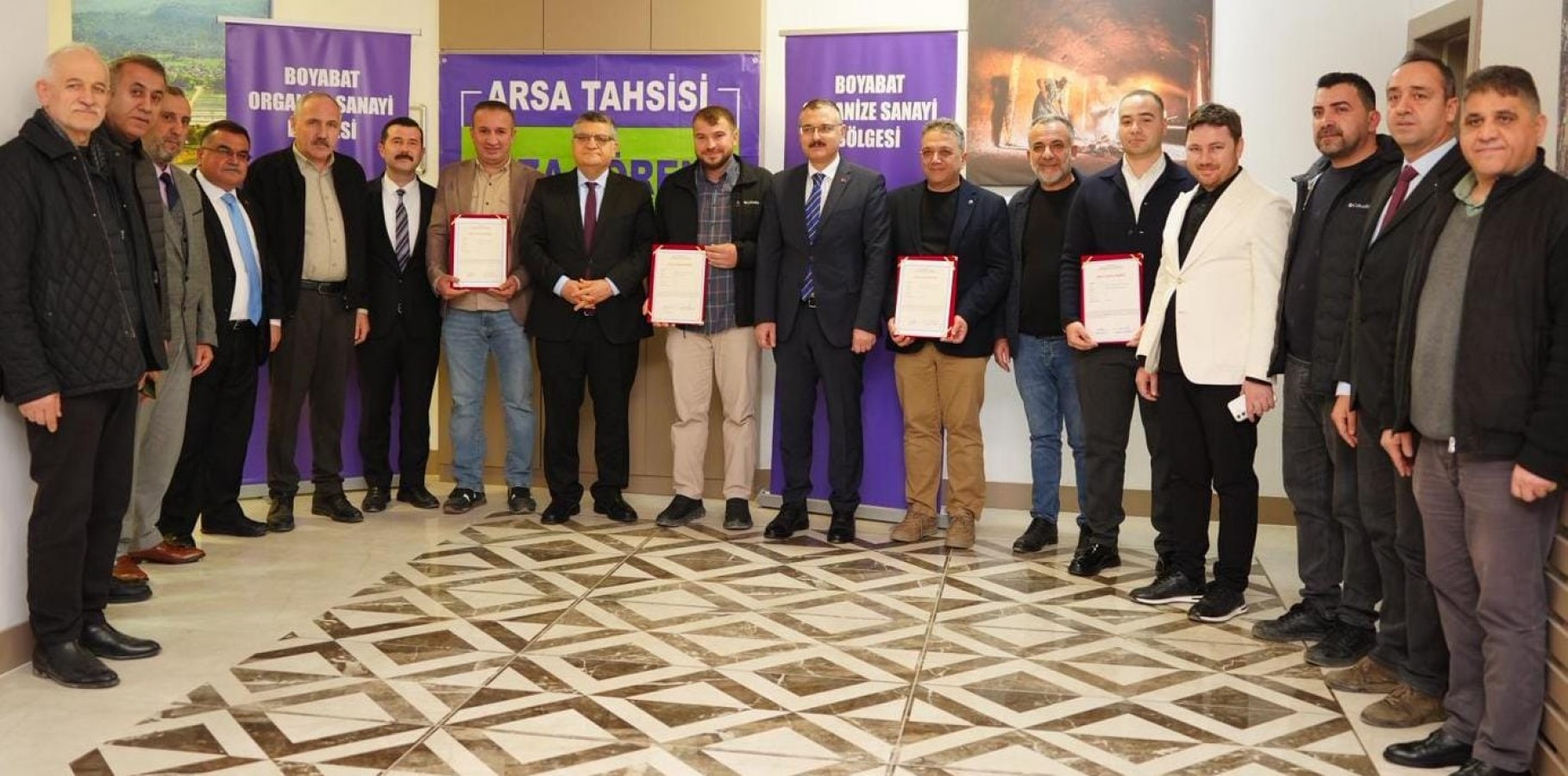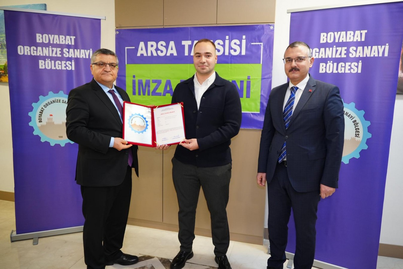 Sinop Valisi Dr. Mustafa Özarslan, Boyabat Kaymakamı Enver Yılmaz, OSB Müteşebbis Heyet Üyeleri ve girişimcilerin katılımıyla 4 adet arsanın tahsisi gerçekleştirildi. Bu kapsamda; Boyabat Organize Sanayi Bölgesi arsa tahsis imzaları, Boyabat Kaymakamlığı’nda düzenlenen törenle atıldı. Boyabat’ta yaklaşık yatırım tutarı 900 milyon TL olan çeşitli sanayi alanlarında toplam 48950 metrekare 4 sanayi parseli 4 yatırımcıya tahsis edildi. Sanayide 4 firmanın tamamı faaliyete geçtiğinde yaklaşık 400 kişi istihdam edilecek.