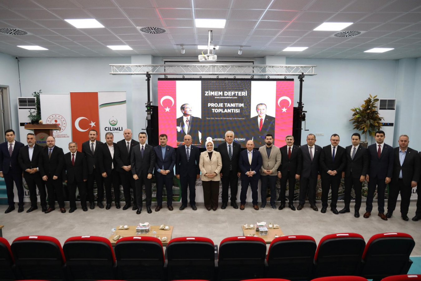 Sosyal yardımlaşmayı daha geniş kitlelere ulaştırmayı amaçlayan projenin bugün de lansmanı yapıldı. Çilimli Belediyesi Konferans Salonu'nda yapılan lansmana AK Parti milletvekilleri Ayşe Keşir, Ercan Öztürk, Vali Yardımcısı Şevket Cinbir, Çilimli Kaymakamı Furkan Alpay, Belediye Başkanı Yılmaz Yıldız, ilçe kaymakamları, belediye başkanları, muhtarlar, sivil toplum kuruluşu temsilcileri ve vatandaşlar katıldı. Programda ilk olarak Zimem geleneği anlatıldı, ardından da e-Zimem Defteri proje için hazırlanan tanıtım filmi izlendi.