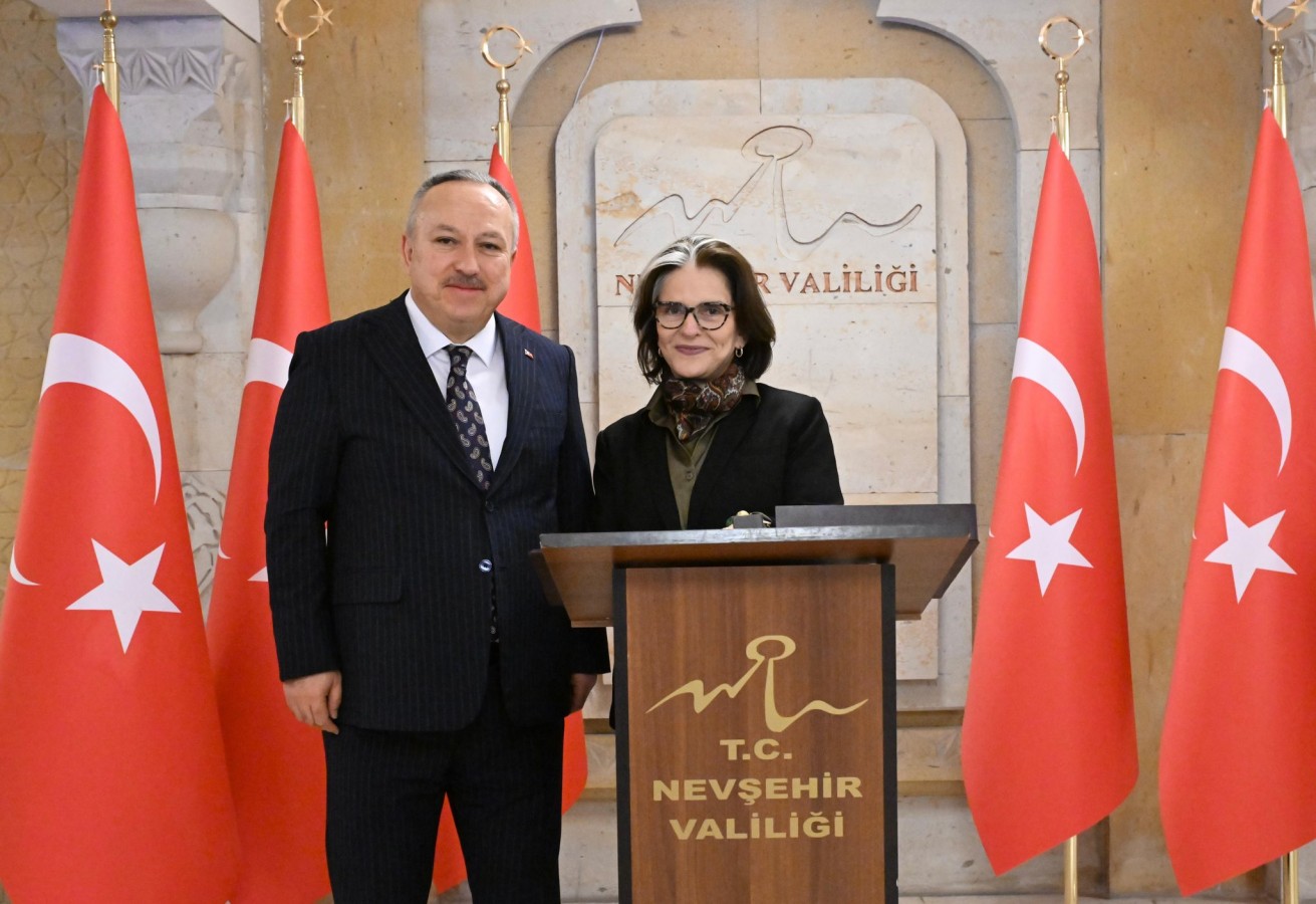 Brezilya’nın Ankara Büyükelçisi Gilda Motta Santos Neves’in Valilik Şeref Defteri’ni imzalamasının akabinde gerçekleştirilen görüşmede; Kapadokya Bölgesi’nin sahip olduğu kültürel ve doğal miras unsurları çerçevesinde turizm potansiyeli, iki ülke arasındaki dostane ilişkiler ve stratejik ortaklık zemininde turizm alanında geliştirilebilecek iş birliği imkânlarını artırmaya yönelik değerlendirmelerde bulunuldu.