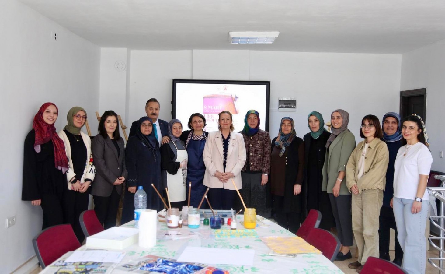 Özel bir buluşmaya katıldıklarını belirten Kaymakam Gevrek, "Su üzerinde ahenkle yayılan her fırça darbesinde; kadının zarafetini, üretkenliğini ve hayata kattığı o eşsiz dokunuşu hissettik. Bu özel buluşmada; ebru teknesine düşen her damlada bir emeği, her motifte ise kadınlarımızın bitmek bilmeyen özverisini paylaştık. Sabırla işlenen her desen, kadınların dünyayı nasıl güzelleştirdiğinin en zarif ifadesi oldu. Hayatın her anını sevgiyle dokuyan, varlıklarıyla dünyamıza anlam katan tüm kadınların 8 Mart Dünya Kadınlar Günü kutlu olsun" diye konuştu.