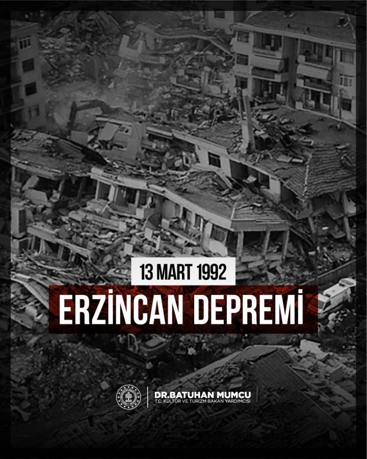 13 Mart 1992 tarihinde Erzincan, saat 19.18'de 6,8 büyüklüğündeki depremle sarsıldı. İlin güneydoğusunda meydana gelen depremden dolayı 653 kişi hayatını kaybetti, 8 bin 57 bina hasar gördü veya yıkıldı. Aslen Erzincanlı olan Kültür ve Turizm Bakan Yardımcısı Batuhan Mumcu, bu depremde babasını kaybetti. Depremin acısını yüreğinde hisseden Mumcu, duygusal bir mesaj yayımladı.