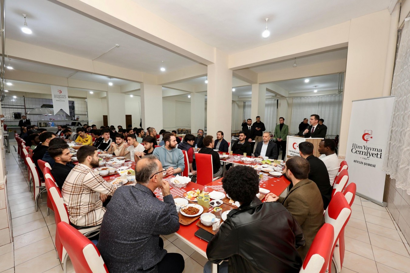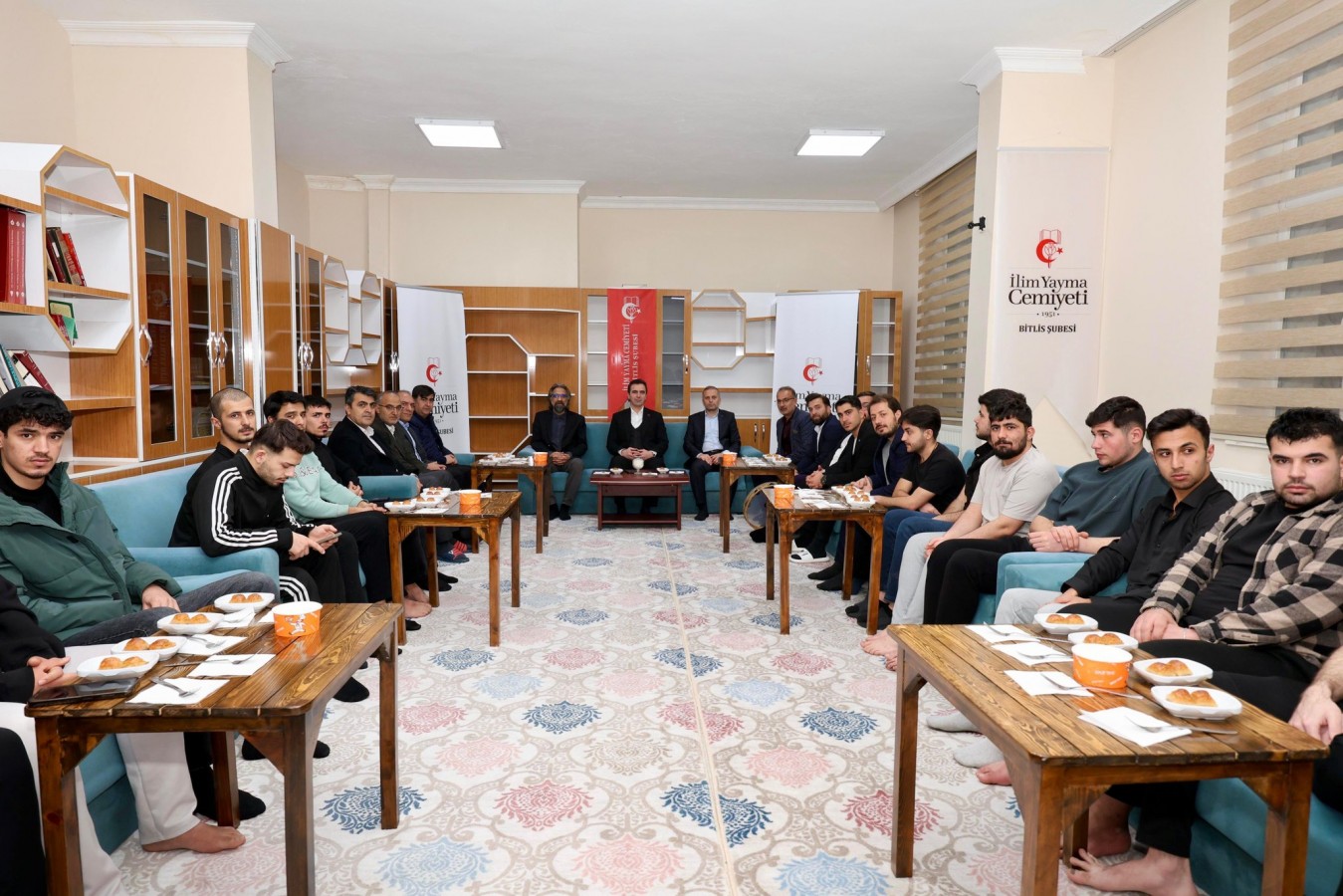 Bitlis Valisi Ahmet Karakaya, ramazan ayının manevi atmosferinde İlim Yayma Cemiyeti Bitlis Şubesi Özel Halil Kantarcı Yükseköğretim Erkek Öğrenci Yurdu’nda kalan öğrencilerle aynı sofrayı paylaşarak oruçlarını açtı. İftar programına; İl Özel İdare Genel Sekreteri Adem Aydoğdu, Bitlis Eren Üniversitesi Rektör Yardımcısı Prof. Dr. Ayhan Yılmaz, İl Milli Eğitim Müdürü Vedat Kaya, İlim Yayma Cemiyeti Bitlis Şubesi Kurucu Başkanı Mustafa Cengiz, İl Müftü Yardımcısı Necmettin Görücü, İlim Yayma Cemiyeti Bitlis Şube Başkanı Hasan Fehmi Kara ve öğrenciler katıldı.
