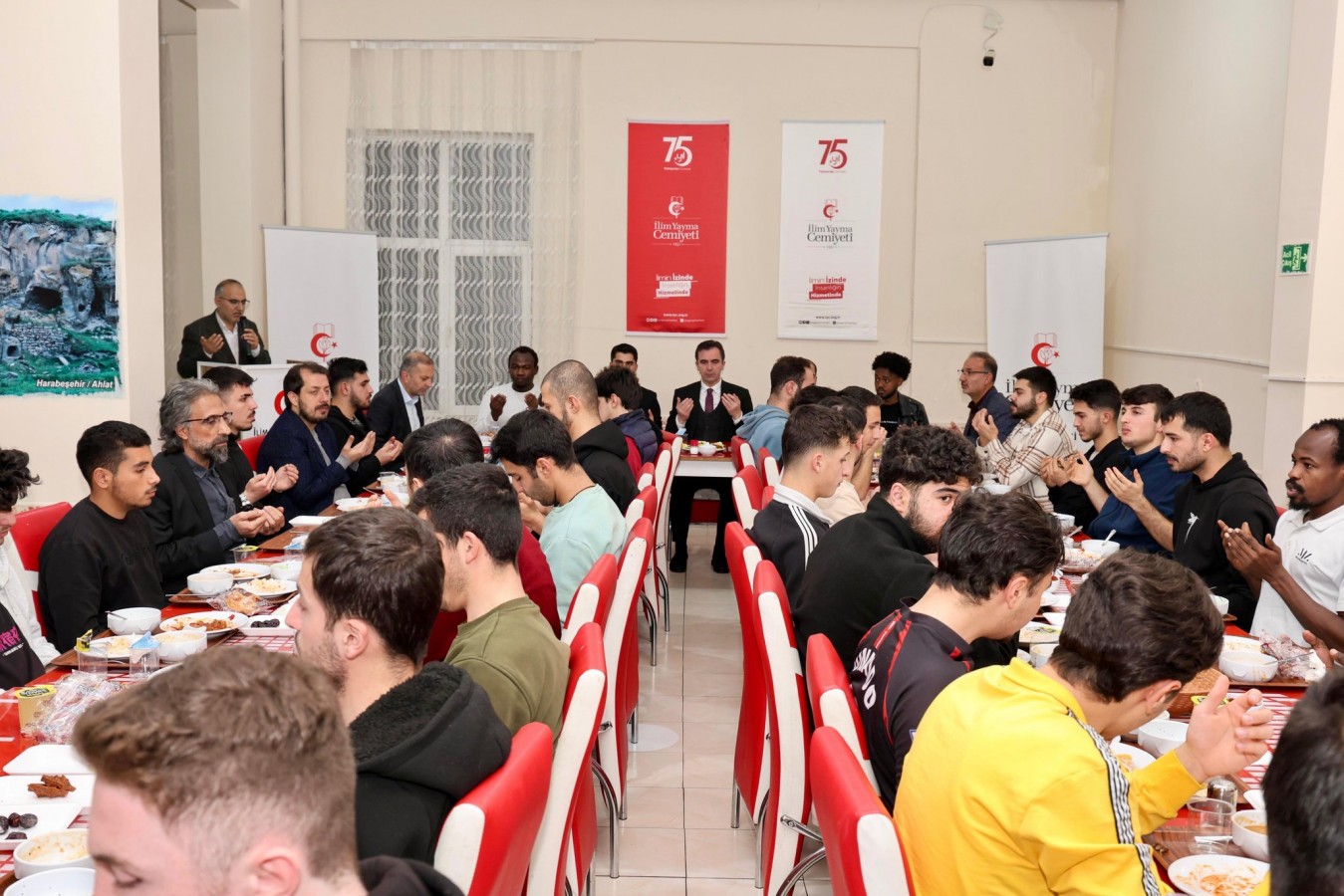 Kur’an-ı Kerim tilavetiyle başlayan iftar programı, yapılan yemek duası ile devam etti. Ramazan ayının birlik, beraberlik ve paylaşma ikliminin hissedildiği programda öğrencilerle yakından ilgilenen Vali Karakaya, gençlerle sohbet ederek onların öneri ve düşüncelerini dinledi.