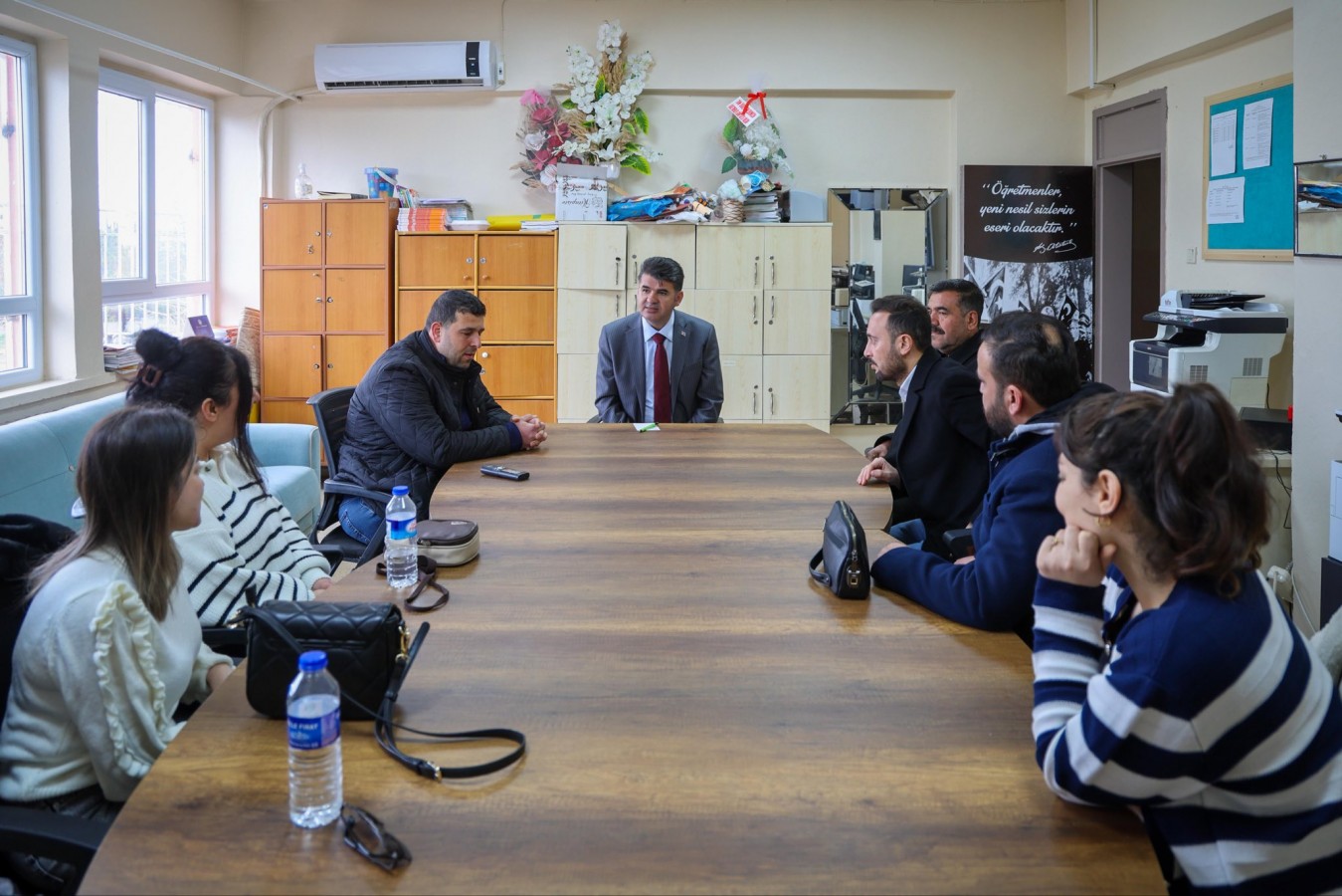 Ziyaretinin devamında öğretmenler odasında öğretmenlerle bir araya gelerek hasbihal eden Vali Kalaylı, “Evlatlarımızın gözlerindeki o ışık, yarınlarımıza olan inancımızın en güçlü teminatıdır” ifadelerini kullandı.