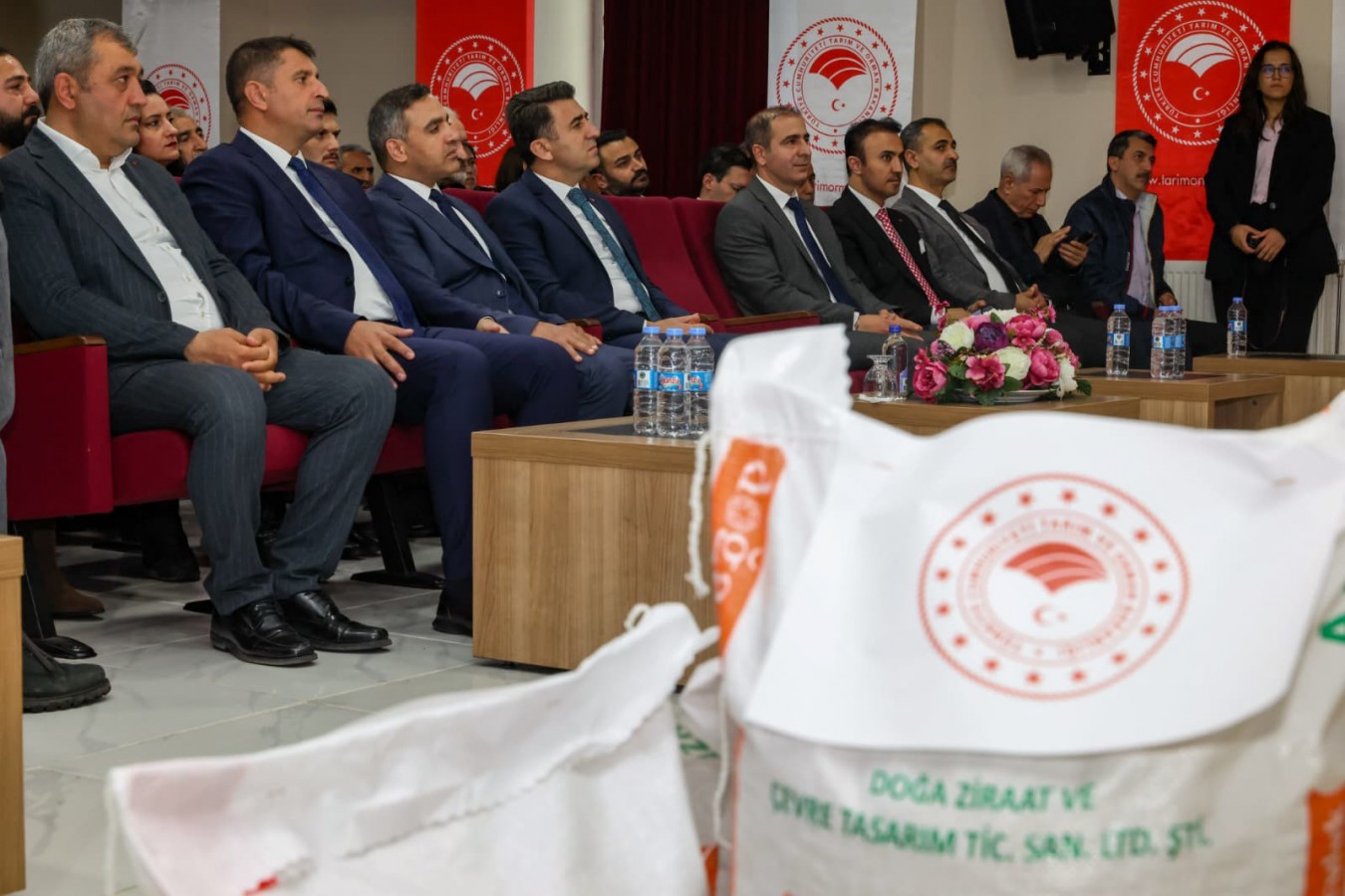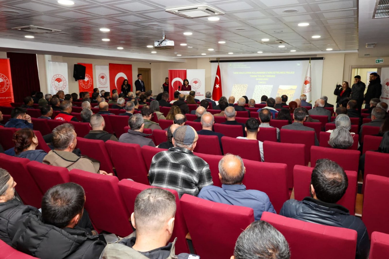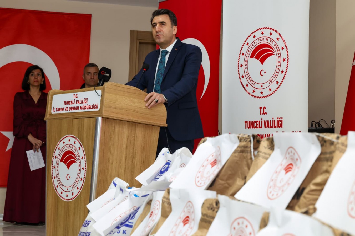 Tunceli Valisi Şefik Aygöl, Tarım Arazilerinin Kullanımının Etkinleştirilmesi (TAKE) Projesi kapsamında düzenlenen programda bin 104 üreticiye toplam 91 bin 500 kilogram tohum ve 147 bin 960 adet sebze fidesi dağıttı.