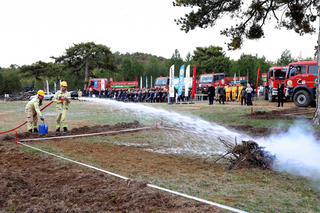 “Yeşil Vatan”ın korunması ve gelecek nesillere aktarılması noktasında ormancılık teşkilatının büyük bir özveriyle görev yaptığını vurgulayan Vali Akın, bu gayretlerin özellikle orman yangınlarında açıkça görüldüğünü belirtti. Geçtiğimiz yıl Doğanhisar ilçesinde meydana gelen orman yangınında ekiplerin gece gündüz demeden büyük bir fedakârlıkla çalıştığını hatırlatan Vali Akın, bir ağacı dahi kurtarmak için gösterilen çabanın takdire şayan olduğunu ifade etti. Yarışmalar kapsamında; yön bulmadan fiziki dayanıklılığa, arama-taramadan alan tespiti ve ölçmeye, hedef atışlarından yangına müdahale becerilerine kadar birçok alanda parkurlar oluşturulduğunu belirten Vali Akın, bu tür faaliyetlerin personelin hem birlik ve beraberlik içerisinde hareket etmesini sağladığını hem de dinamik kalmasına katkı sunduğunu dile getirdi.