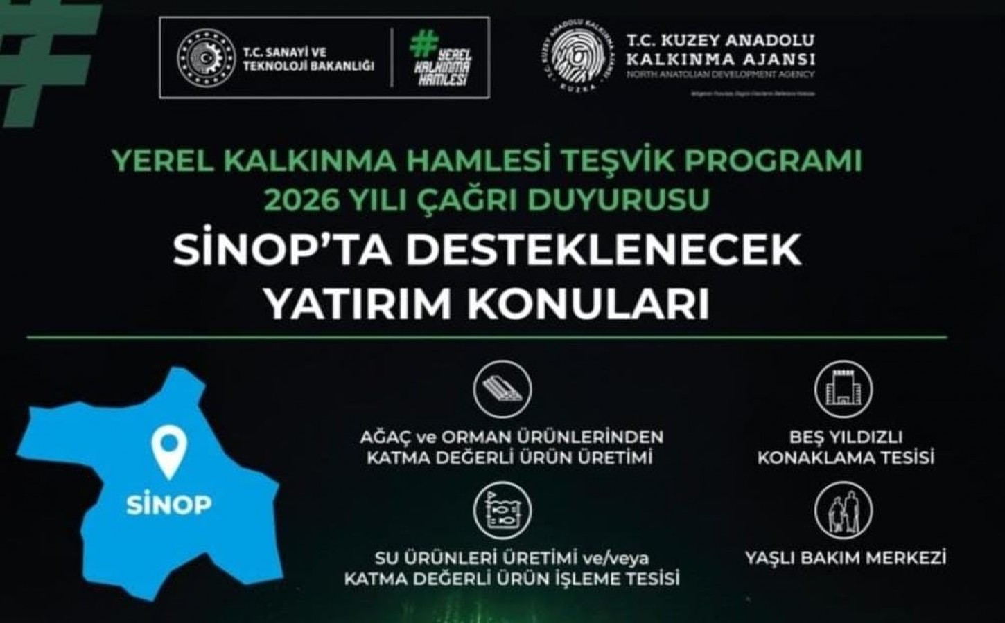 Sanayi ve Teknoloji Bakanlığının koordinasyonunda yürütülen Türkiye Yüzyılı Yerel Kalkınma Hamlesi Teşvik Programı 2026 Yılı Çağrı Duyurusu kapsamında, tanıtım ve bilgilendirme toplantısı gerçekleştirildi. Valilik, Kuzey Anadolu Kalkınma Ajansı (KUZKA) ve Boyabat Ticaret ve Sanayi Odası iş birliğinde düzenlenen toplantıya; Vali Dr. Mustafa Özarslan, ilgili kamu kurumları, iş dünyası temsilcileri ve yatırımcılar katıldı. Toplantıda; Yerel Kalkınma Hamlesi kapsamında sağlanan destekler, yatırımcılara sunulan fırsatlar ve Boyabat özelinde öne çıkan yatırım alanları detaylı şekilde ele alındı.