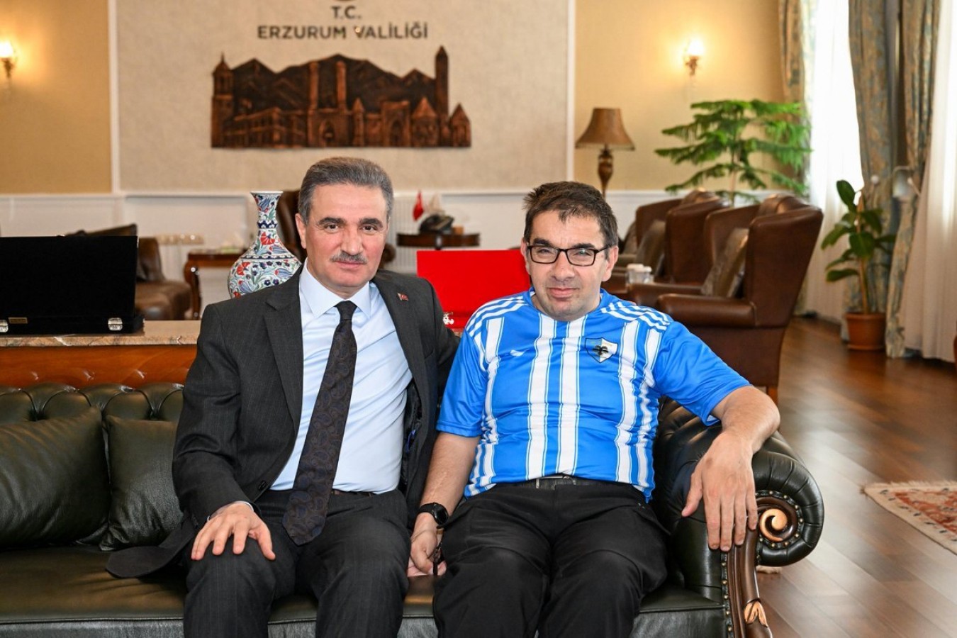 Erzurum Valisi Aydın Baruş, özel gereksinimli bireyleri makamında ağırladı. Onur Murçak, Yasin Kaybuz ve Kısmet Pala ile sohbet eden Vali Baruş, misafirleriyle yakından ilgilendi.